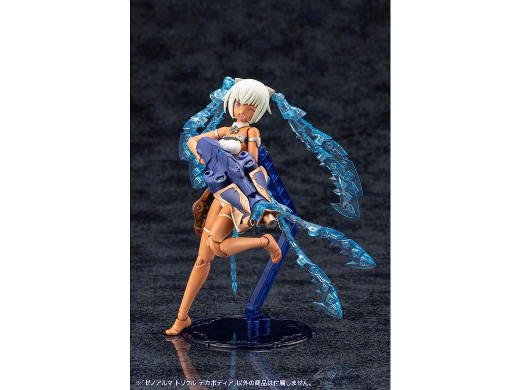 Bemutatjuk a Trickle Decapodia-t a XenoAlma sorozatból - egy olyan fegyversorozatot, amely kibővíti az Arcanadea sorozat történetét és testreszabási lehetőségeit. Az alkatrészek átrendezhetők, így két formát hozhatnak létre: Egy szörnyeteg formát, amely csak ezzel a készlettel teljesen összeszerelhető, és egy fegyverformát a Velretta karakter számára. A Trickle Decapodia a Hydro Zeeforce-szal is kombinálható, így létrehozható a gigantikus XenoAlma, Tidal Orketos. Minden egyes alkatrész 3 mm-es illesztésekkel van összekötve, így nemcsak az Arcanadea karakterekkel, hanem a Kotobukiya sorozat összes eredeti modelljével is használható. Tartalmazott alkatrészek és jellemzők: - Az alkatrészek átrendezhetőek, így két formát lehet létrehozni: egy szörnyvers formát, amely ezzel a készlettel önmagában is teljesen összeszerelhető, és egy fegyverformát a Velretta karakterhez - A Trickle Decapodia kombinálható a Hydro Zeeforce-szal, így létrehozható a gigantikus XenoAlma, Tidal Orketos. - A Trickle Decapodia összeilleszthető a Hydro Zeeforce-szal, hogy létrehozzátok a hatalmas ágyút, a Tidal Harpoon-t. - A 3 mm-es csatlakozási pontok minden alkatrészen konfigurálhatóvá és kompatibilissé teszik őket a meglévő M.S.G, Frame Arms és Frame Arms Girl alkatrészekkel - A standard Arcanadea alapot tartalmazza. A bázis használatával a Trickle Decapodia a levegőben exponálható. Fegyver mód: - Korona: 3 mm-es csukló lehetővé teszi a csatlakozást más Kotobukiya készletekkel. - Vállpáncél: 3 mm-es csukló lehetővé teszi a csatlakozást más Kotobukiya készletekkel. - Hátsó egység: Tartalmaz egy 3 mm-es csuklót az alapban és gömbcsuklót a rugalmas mozgás érdekében. - Lábpáncél: A boka- és térdpáncél a modellel együtt mozoghat, lehetővé téve a rugalmas pózolást - Lándzsa: A kihúzható tartó lehetővé teszi a különböző pozíciókban való használatot. A háromféle páncélzat 3mm-es csatlakozási pontokkal rendelkezik, amelyek lehetővé teszik a csatlakozást más Kotobukiya készletekkel.Kiegészítő paraméterek