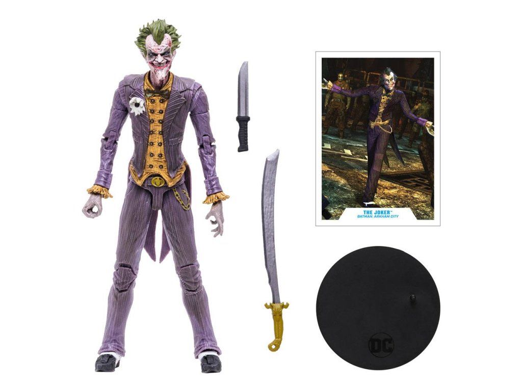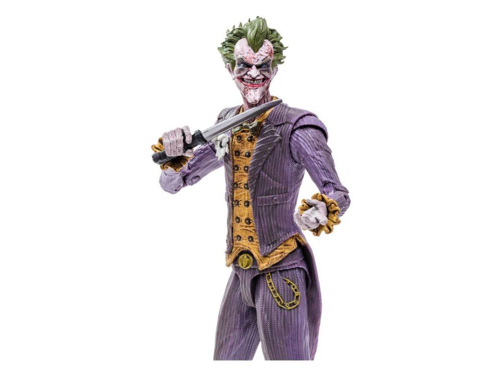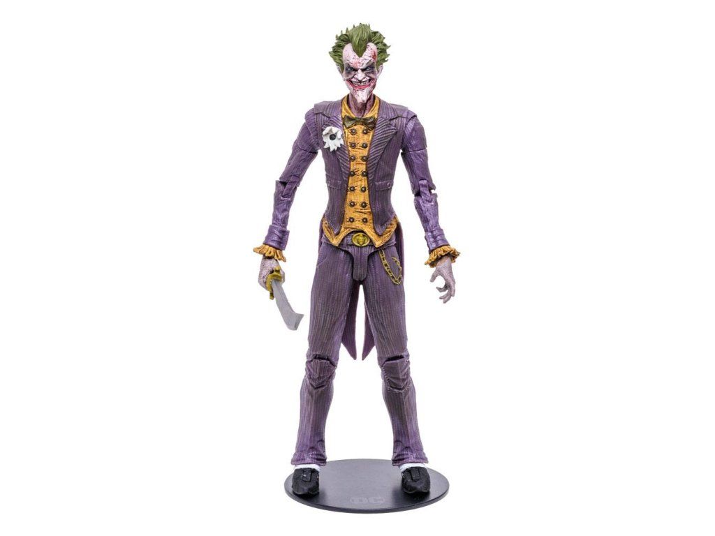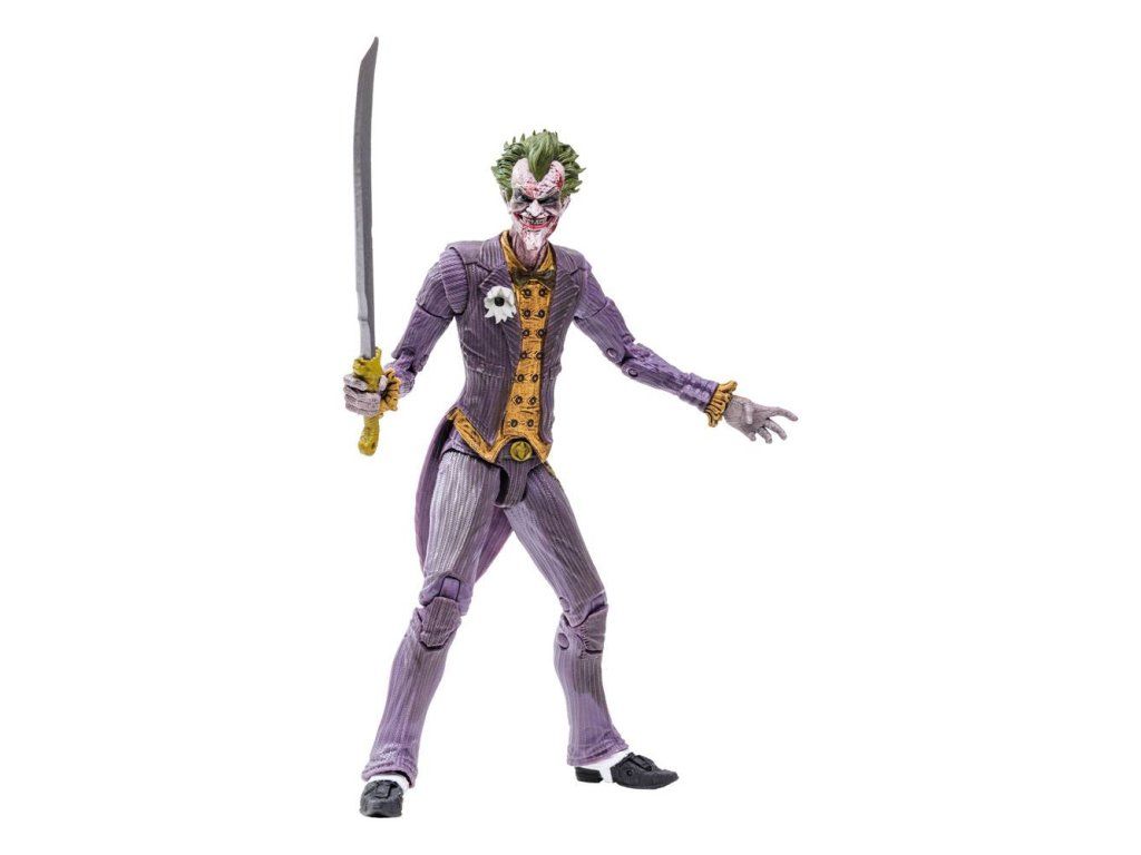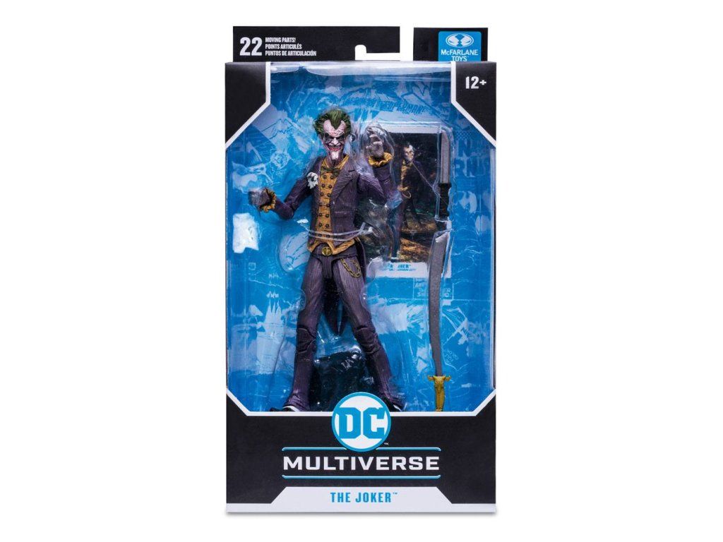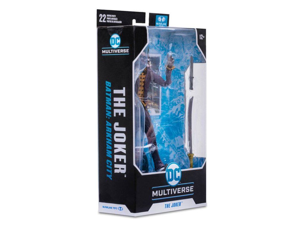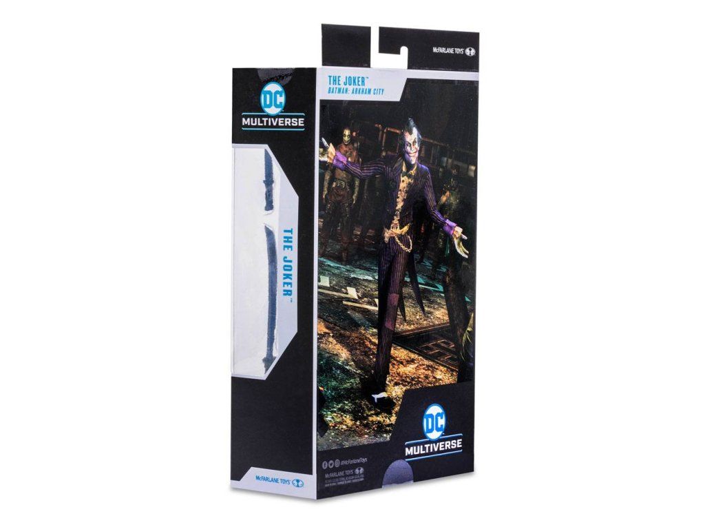 Egy rendkívül veszélyes szupergonosz, a Joker, akinek fehér bőre, zöld haja és vérvörös ajkai karikatúraszerű megjelenése mögött kaotikus természet rejtőzik. A bűn bohóc hercegének nevezett bohócnak nincsenek szuperképességei, kivéve a hihetetlen erőszakra való képességét és a halálos káosz megteremtésének képességét. Gyakran szövöget bonyolult terveket ősellenségének, Batmannek az elfogására. A Sötét Lovaggal való legutóbbi találkozása óta a Joker az Arkham City-i szuperbörtönbe került, és súlyos betegségben szenved, amelyet a Titan Formula okoz, egy erős méreg, amelyet titokban finanszírozott, hogy Bane Venomjának utódja legyen. Főbb jellemzők:-Hihetetlenül részletes, 7' méretarányú figura fémes festéssel a DC Multiverzum alapján- Fényképes kivitelben, Ultra artikulációval, akár 22 mozgó alkatrésszel a teljes körű pózolás és játék érdekében- Joker figura a Batman játékból: Arkham City- Joker tartozékok: kard, kés és talp- Gyűjthető művészeti kártyát tartalmaz a figura képével az előlapon és a karakter életrajzával a hátoldalon- Gyűjtsd össze az összes McFarlane Toys DC Multiverse figurát.