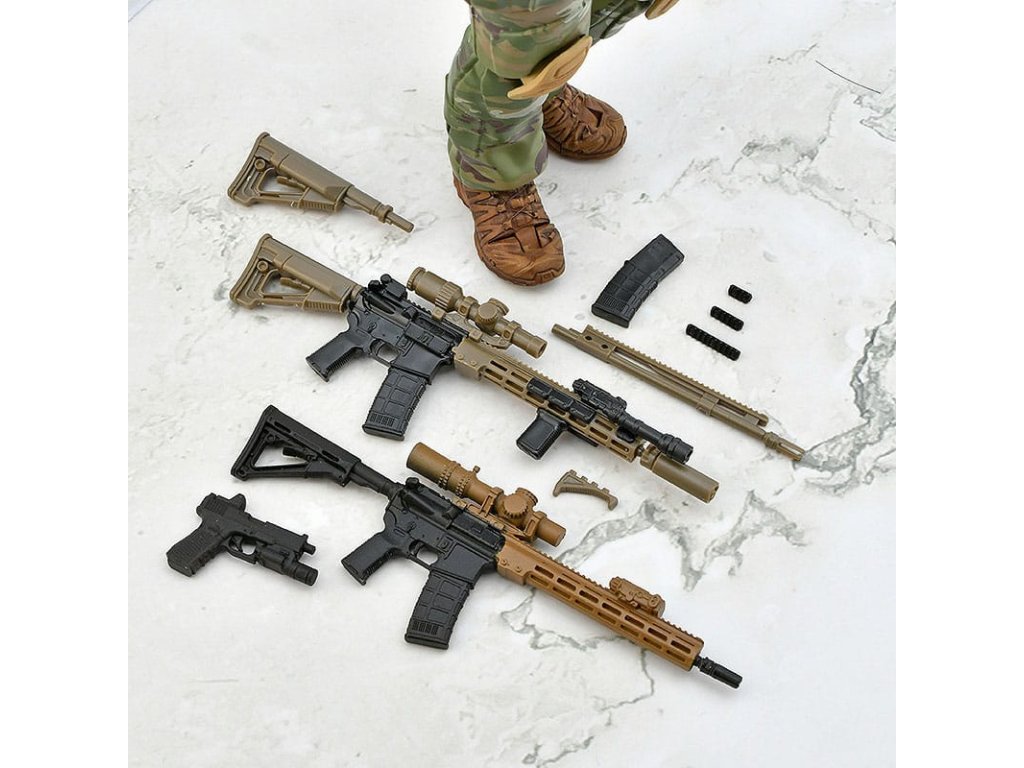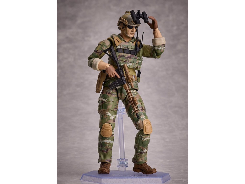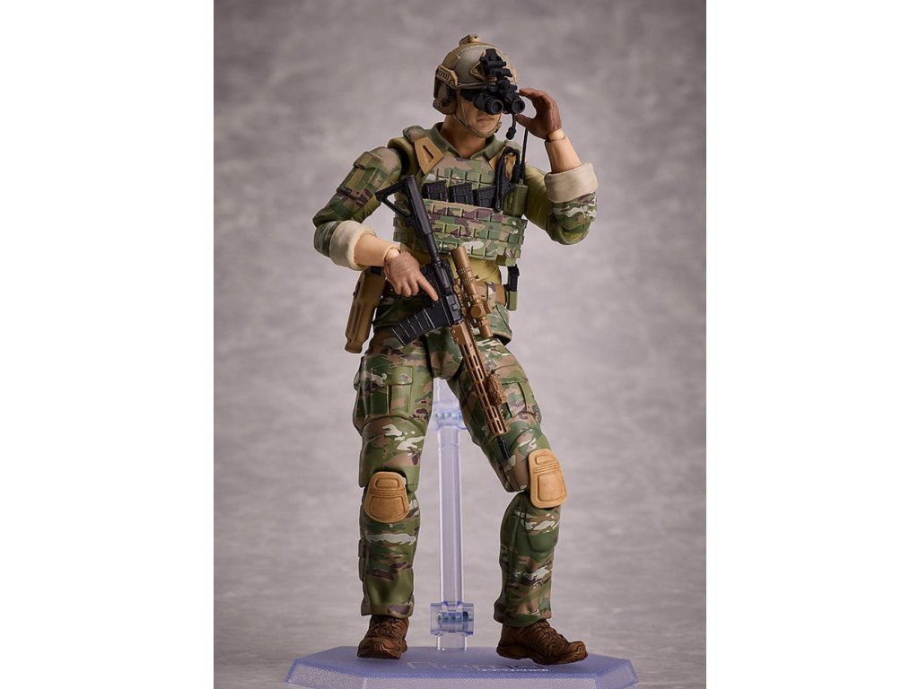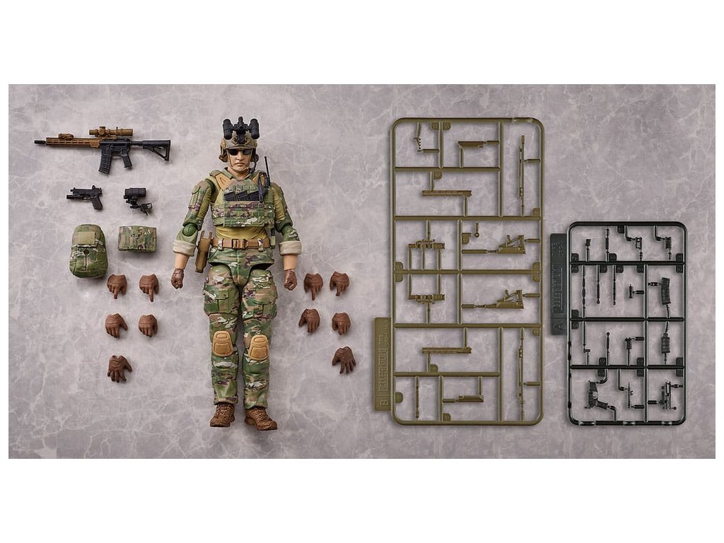Az 1/2 méretarányú "Little Armory" fegyvermodell sorozatból érkezik a valósághű katonai akciófigurák második része! A figma a 'Green Berets', az Egyesült Államok hadseregének különleges alakulatának köznyelvi elnevezése alapján készült. A "Zöldsapkások" fő küldetései közé tartozik az irreguláris hadviselés és a más országokkal való partnerség kiépítése. Az elit alakulat különböző szakterületekről érkező szakemberekből áll, akik szigorú kiképzésen vettek részt - A teljesen átfogó tamponnyomásnak köszönhetően a világszerte a különleges erőknél népszerű univerzális álcázási mintázatot hűen újraalkották (figuránként több mint 200 tamponnyomás érhető el). - A Különleges Erők személyzetének mintázati stílusa lehetővé teszi a különböző országok fegyvereivel való zökkenőmentes megjelenítést - A sisak éjjellátója cserélhető - A nyak és a vállak kétlépcsős csuklómechanizmussal rendelkeznek, amely lehetővé teszi a valósághű puska célzási pozíciókat. - Az olyan jellemzők, mint a térdek különálló részei és a dupla csuklós csukló lehetővé teszi a valósághű pózolást - A mellékelt termék a 14,5 hüvelykes URGI karabélymodell hűen rekonstruált változata - A mellékelt termék egy egyszerű, összeszerelésre kész termék, ahol figyelmet fordítottak a részletes szobrászatra. - Tartalmaz egy Mk27 pisztolyt, amely egy tokban tárolható - Rugalmas műanyagot használtak bizonyos területeken, hogy az arányok megmaradjanak anélkül, hogy a mobilitás sérülne - A figura sima, de mozgatható ízületei lehetővé teszik, hogy különböző pózokat vegyél fel - Tartalmaz egy csuklós figmaállványt, amely lehetővé teszi, hogy különböző pózokat vegyél fel. A Little Armory sorozatból nézd meg a figmával használható többi fegyvert!Kiegészítő paraméterek