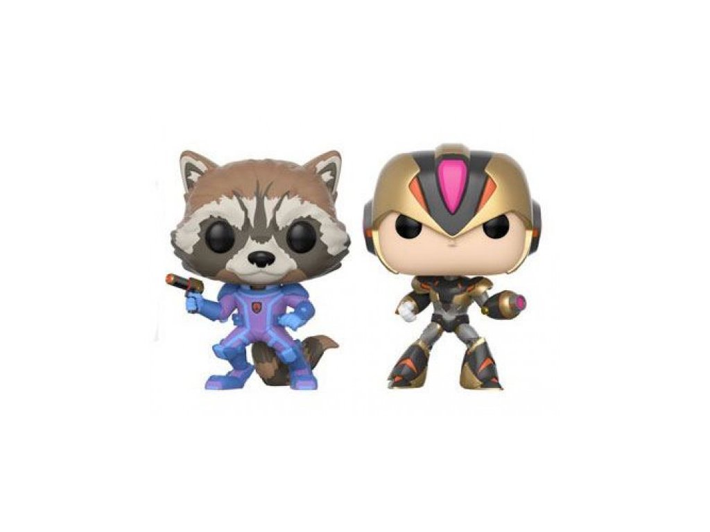 Egy pár figura egy különleges Marvel és Capcom crossoverből. Ebben a csomagban Rocket, a Galaxis őrzői pilótája áll szemben MegaMan-nel.