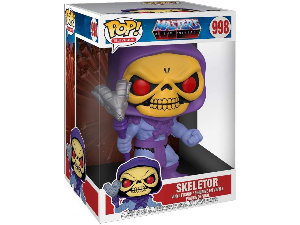 A Funko PoP! A Masters of the Universe főszereplője Skeletor, egy kék bőrű humanoid, aki lila csuklyát visel a koponyáján, és He-Man főellenségét alakítja. Skeletor Super Sized változata igazán nagy, 25 cm magas, így minden gyűjteményben kötelező darab lesz.