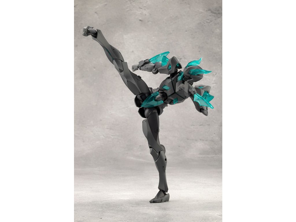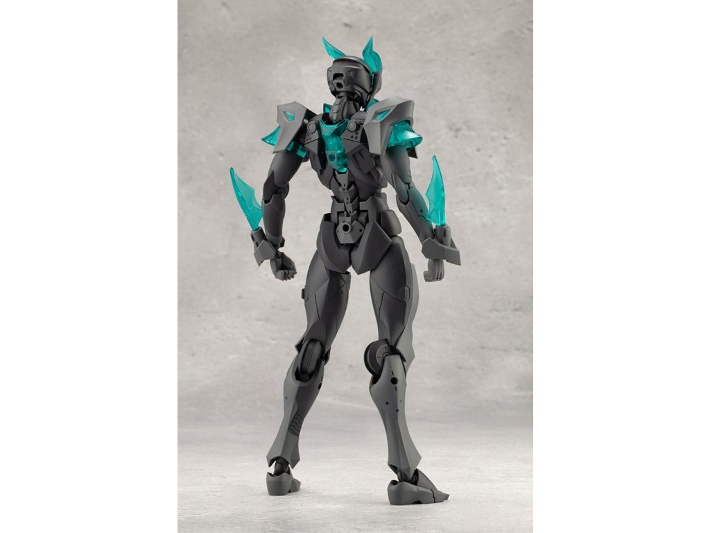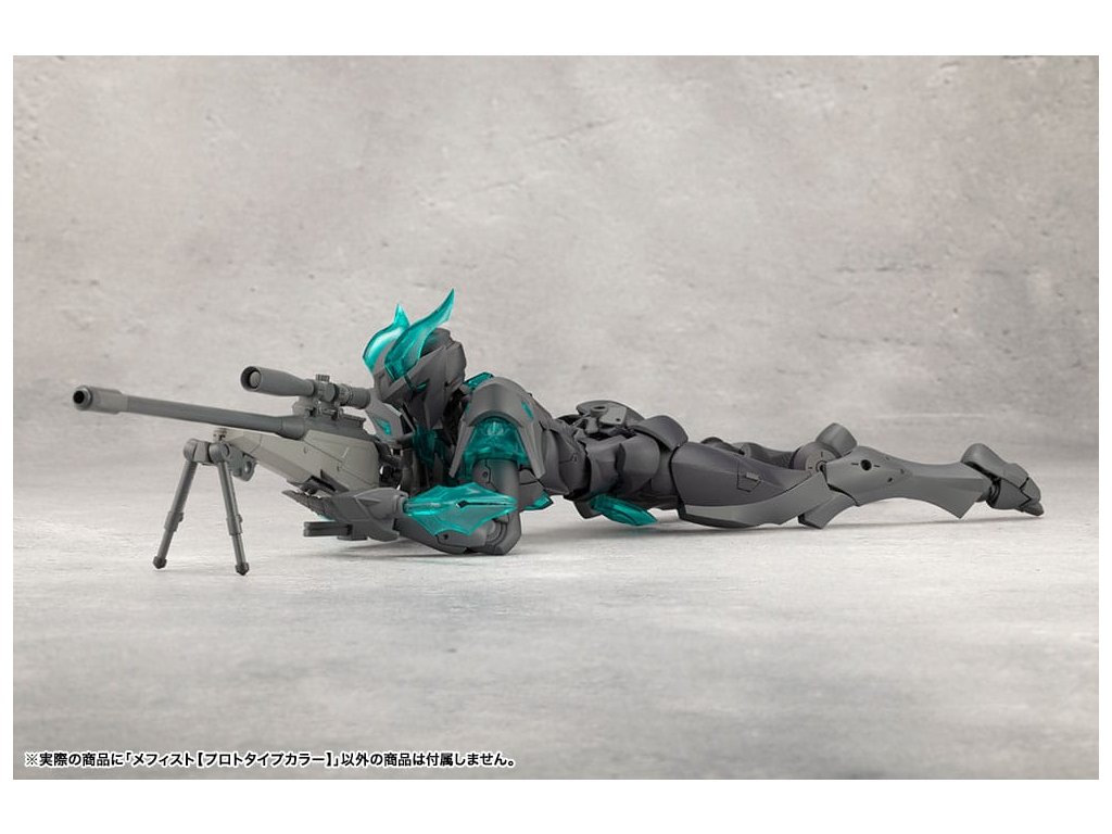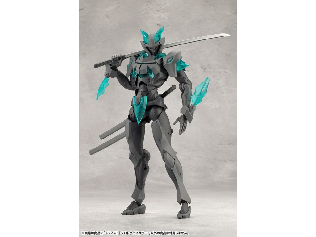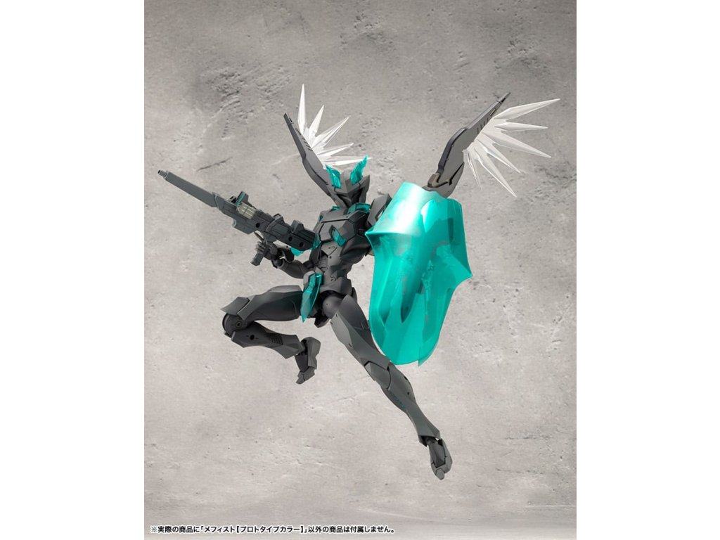 Sok felhasználó kérésére a tizedik MEGALOMARIA figura Mephisto színes prototípusa. Színösszeállítás: A modell három színt használ - HEXA fekete, HEXA szürke és átlátszó türkiz zöld, egy olyan kombinációt, amelyet úgy terveztek, hogy jól illeszkedjen mind az M.S.G.-hez, mind a HEXA GEAR-hoz. Mozgó részek: A Mephisto körülbelül 54 mozgási ponttal rendelkezik a testén. Az új sípcsont-artikulációval ellátott térdízület egyetlen ízületi rétegből áll, és eléggé befelé hajlítható ahhoz, hogy a modell szeiza-pózban, azaz a lábak alá hajtva ülhessen. A lábujjak új csuklója lehetővé teszi az agresszívabb pozíciók felvételét. A térdpáncél önállóan mozgatható és a kívánt pozícióba állítható. A karok több ízületből állnak, és előre lehet nyújtani őket, hogy keresztbe tett karpozíciót hozzanak létre. Hárompontos csuklóízület: a csuklót úgy tervezték, hogy közel 180 fokban befelé hajoljon, lehetővé téve a kemény pont előrevitelét. Mephisto nagyobb ízületekkel rendelkezik, mint a női testű karakterek, például Principal, ami lehetővé teszi, hogy Mephisto nagyobb és erősebb fegyvereket használjon. A normál csuklóízületek és a rés szabadon használható, ahogyan azt előnyben részesítik. Kezek: A készlet hétféle kezet tartalmaz. Ezek között vannak kardok tartására, fegyverek fogására tervezett kezek, valamint zárt ököl és különböző nyitott kezek. Tartalmazza: - 1 x Mephisto modell - 1 x csuklós pengék (bal és jobb) - Hétféle kéz - 1 x bunkósbot alakú páncél 3 mm-es csuklóval, amely kompatibilis a repülő bázissal - 1 x normál csuklócsukló és rés (bal és jobb) - 1 x egyrészes hátpáncél.Kiegészítő paraméterek