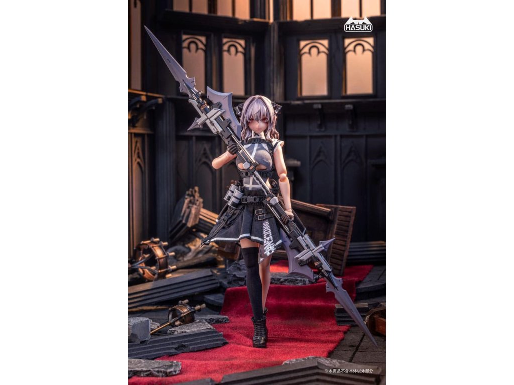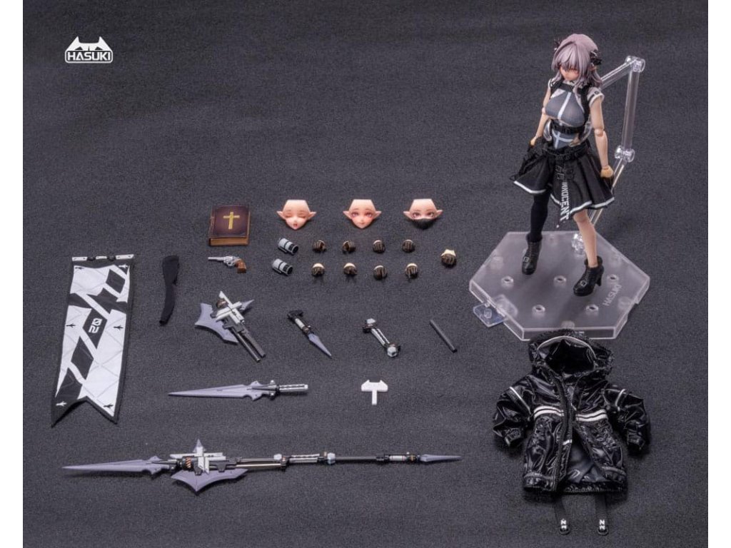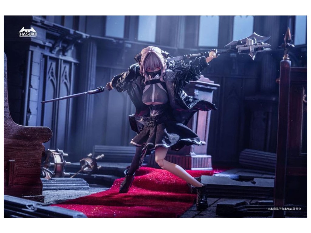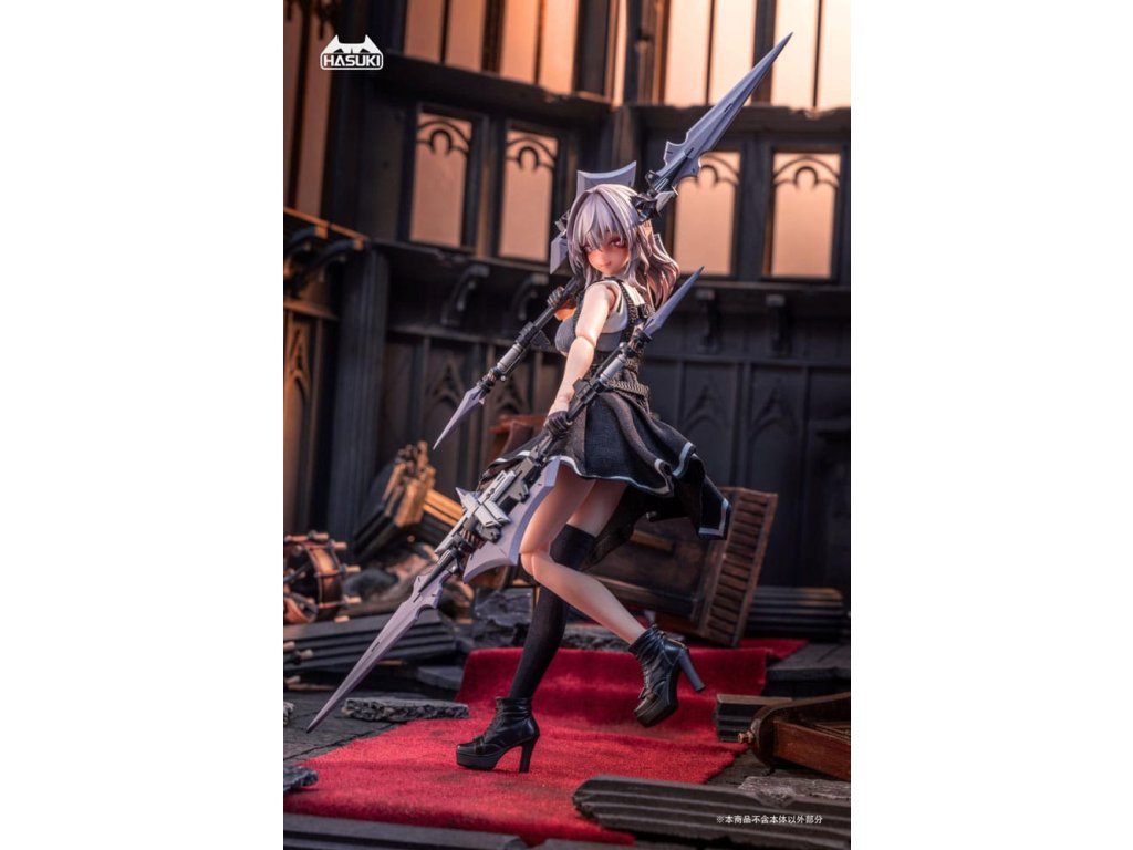 Bemutatjuk FRIEDE-t, Sukbua nővérét, a "CASE ART" sorozatból, egy 1/12 méretarányú, csuklós figurát, melyet a HASUKI gyárt! A succubikról vagy nővérekről alkotott hagyományos elképzelésekkel ellentétben Friede túlméretezett kabátban és egy combig érő harisnyában jelenik meg, és hatalmas harci erővel. Ezúttal két változatot kínálunk: Normál kiadás és Különleges kiadás. A Special Edition két fegyverrel kombinálva érkezik, ami még dinamikusabb és magával ragadóbb pózokat tesz lehetővé. Ne hagyd ki a lehetőséget, hogy a bűbájos Friede-t a gyűjteményedbe illeszd!Tartozékok: A Friede a következő tartozékokkal rendelkezik: - 1 x Articulated Body - 1 x Head - 4 x Spare Face Parts (mosolygós, kilógó nyelv, maszk, imádkozó) - 6 x Spare Hand Parts (béke, markolat, laza, fegyvertartás, imádkozó) - 2 x Kombinált fegyver - 2 x Gránát - 1 x Biblia- 1 x Revolver - 1 x Zászló- 1 x Szemmozgató trükk- 1 x Kiállítási alap- 1 x Szoknya- 1 x Felső- 1 x Külső- 1 x Harisnya (egy láb).Kiegészítő paraméterek