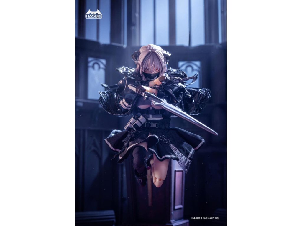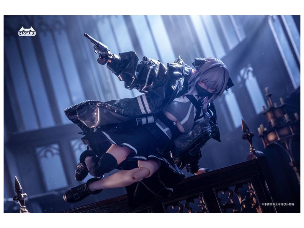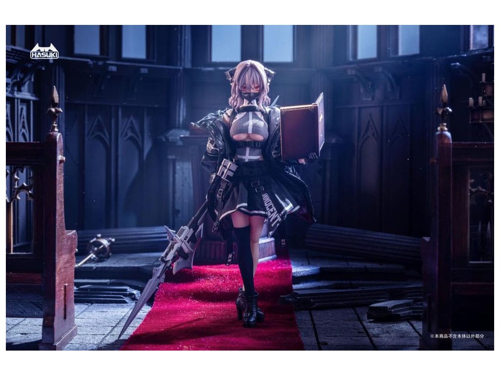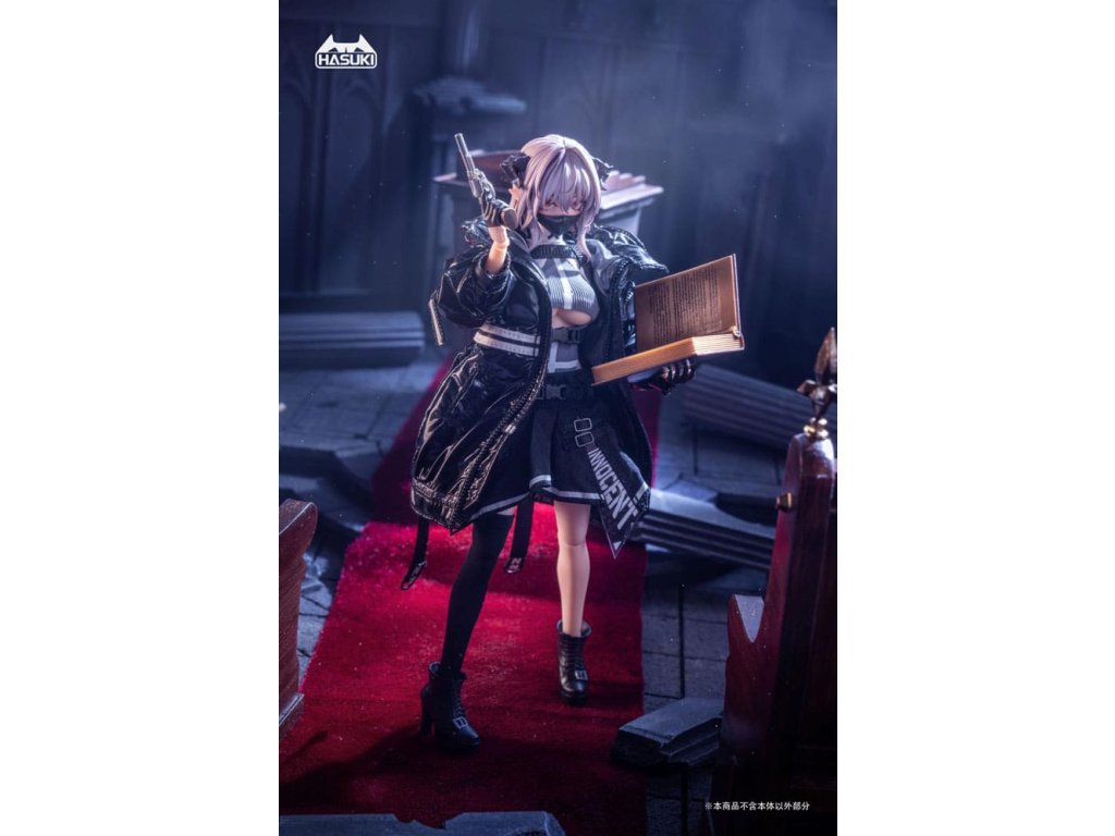 Bemutatjuk FRIEDE-t, Sukbua nővérét, a "CASE ART" sorozatból, egy 1/12 méretarányú, csuklós figurát, melyet a HASUKI gyárt! A succubikról vagy nővérekről alkotott hagyományos elképzelésekkel ellentétben Friede túlméretezett kabátban és egy combig érő harisnyában jelenik meg, és hatalmas harci erővel. Ezúttal két változatot kínálunk: Normál kiadás és Különleges kiadás. A Special Edition két fegyverrel kombinálva érkezik, ami még dinamikusabb és magával ragadóbb pózokat tesz lehetővé. Ne hagyd ki a lehetőséget, hogy a bűbájos Friede-t a gyűjteményedbe illeszd!Tartozékok: A Friede a következő tartozékokkal rendelkezik: - 1 x Articulated Body - 1 x Head - 4 x Spare Face Parts (mosolygós, kilógó nyelv, maszk, imádkozó) - 6 x Spare Hand Parts (béke, markolat, laza, fegyvertartás, imádkozó) - 2 x Kombinált fegyver - 2 x Gránát - 1 x Biblia- 1 x Revolver - 1 x Zászló- 1 x Szemmozgató trükk- 1 x Kiállítási alap- 1 x Szoknya- 1 x Felső- 1 x Külső- 1 x Harisnya (egy láb).Kiegészítő paraméterek
