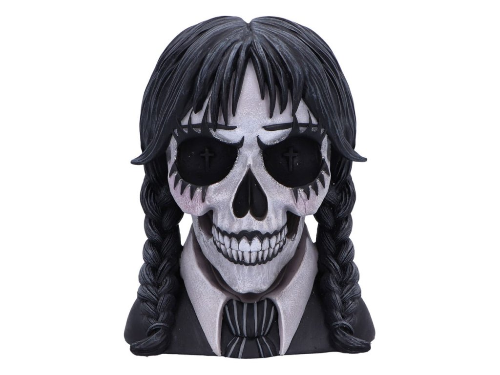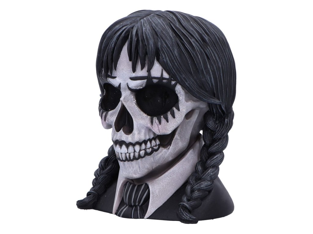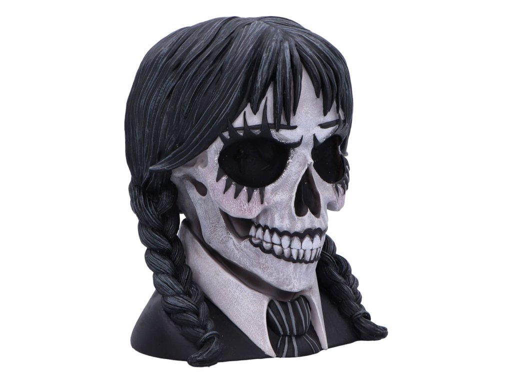 "Sötét kilátás: a gótikus elegancia találkozik a hátborzongató művészettel. A Sötét tekintetet a gótikus iskoláslány, a mesterien megtervezett Nemesis Now ihlette. Ez a hátborzongatóan szép darab a legfinomabb gyantából van öntetve, és olyan finom részleteket mutat, amelyek a sötét, fenyegető esztétikát az iskolai egyenruha ártatlanságával ötvözik. A koponya kézzel festett és fekete-fehér ruhadarabokkal díszített, míg a fonott fekete haj leomlik, hogy gótikus bájt kölcsönözzön neki. A szemek körüli csillogó hangsúlyok hipnotikus kontrasztot nyújtanak, hipnotikus, túlvilági megjelenést teremtve. Minden egyes koponya aprólékosan megmunkált, hogy olyan egyedi legyen, mint a gyűjtő, akit elvarázsol. A fényes szemek és a finom részletek teszik a Dark Gaze-t a tökéletes központi darabot minden koponya rajongó vagy a sötét dekoráció rajongója számára. Akár egy gyűjteményben van kiállítva, akár ajándékba adják, ez a koponya a titokzatosság kitörölhetetlen érzését sugározza, így bármely kísértetjárta vagy gótikus ihletésű térben megkülönböztető darab lesz. A Dark Gaze egy fantáziadús díszdobozba csomagolva, amely tükrözi a benne lévő koponya lényegét, biztonságosan és stílusosan kerül házhoz. Tökéletes gyűjtőknek és a hátborzongató dolgok szerelmeseinek, ez a koponya nem csak a teret dobja fel, hanem a gótikus kifinomultság egy hátborzongató nyilatkozatát is elküldi."Kiegészítő paraméterek