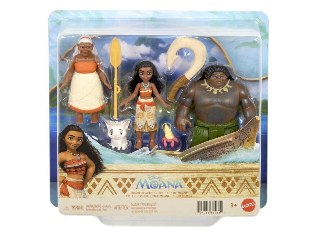A Moana című Disney-film karaktereinek inspiráló készlete. Ez a készlet négy felejthetetlen karaktert tartalmaz vonzó kis formátumban! A Moana karakterkészlet tartalmaz egy Moana babát a jellegzetes megjelenésében, egy Maui babát varázslatos horgászhoroggal, egy Tala nagyi babát és egy aranyos Pua malacot. Egy aranyos rák barát és egy evező kiegészítő teszi teljessé a készletet. A rajongók izgatottan mesélik majd újra a történetet kedvenc karaktereikkel az elejétől a végéig. A babák nem tudnak egyedül állni. A színek és a minták változhatnak.