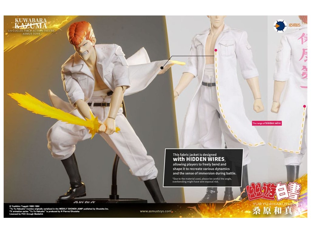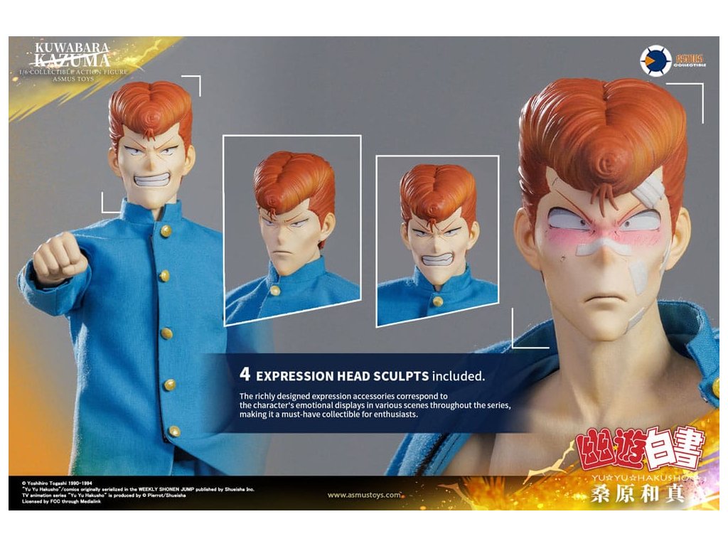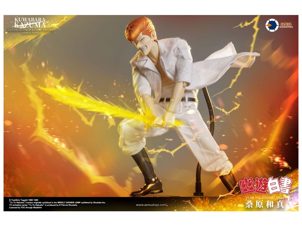 A klasszikus anime sorozatból, a YuYu Hakusho-ból érkezik Kazuma Kuwabara (Deluxe Edition), a hatodik sorozat figurája az Asmus Toys-tól. Ez a figura Kuwabara teljesen csuklós testével, valamint további alkatrészekkel és kiegészítőkkel rendelkezik, amelyekkel szórakoztató pózokat hozhatsz létre. A figura csodálatos kiegészítője lesz minden YuYu Hakusho rajongó gyűjteményének, ne hagyd ki a lehetőséget, hogy még ma megrendeld a tiédet! A deluxe kiadás tartalmaz egy további Asmus testet és egy második Spirit Sword kiegészítőt.