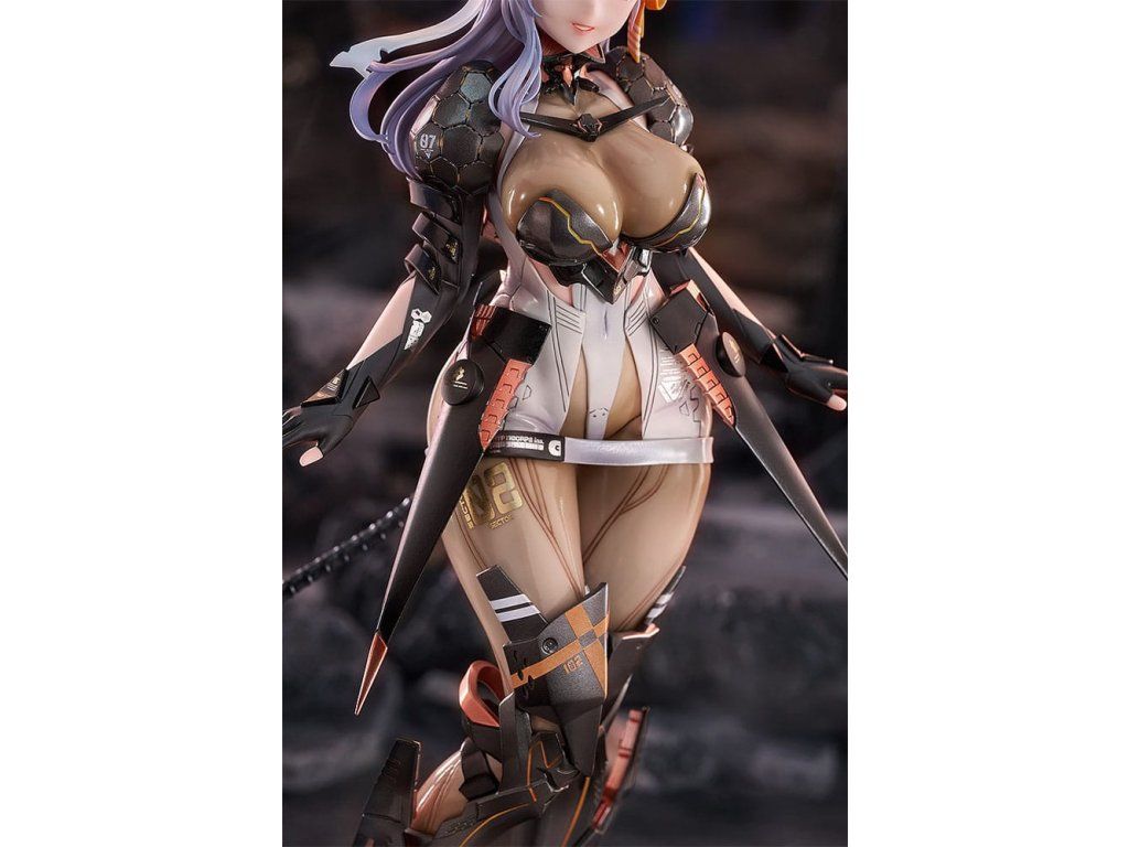 A népszerű okostelefonos játékból, a 'GODDESS OF VICTORY: NIKKE'-ből érkezik egy 1/7 méretarányú Modernia figura! Modernia jellegzetes ruházatának textúrája részletes festéssel készült. A dús alakját reprodukáló ruházatát, valamint a hátán lévő fegyvereket a legapróbb részletekig újraalkották. Ráadásul Modernia ruhája levehető, és cserélhető alkatrészeket is tartalmaz, így sokféle megjelenítési lehetőséget kínál! Mindenképpen egészítsd ki gyűjteményedet az aranyos, de csábító Modernia, Commanderrel!Kiegészítő paraméterek