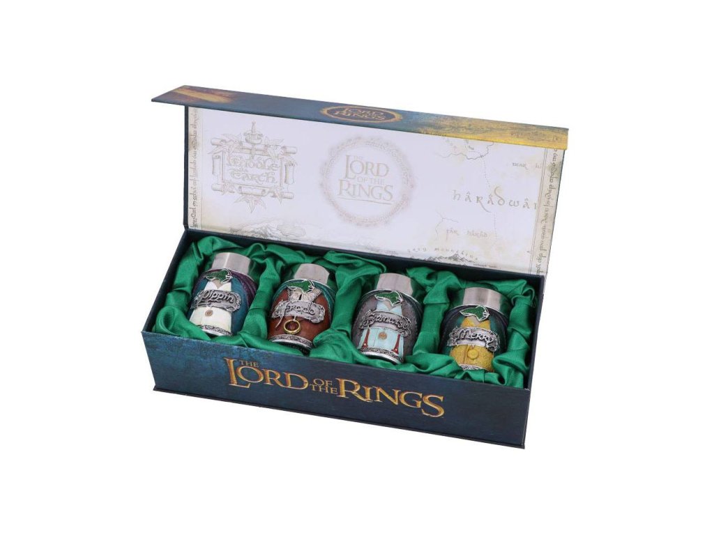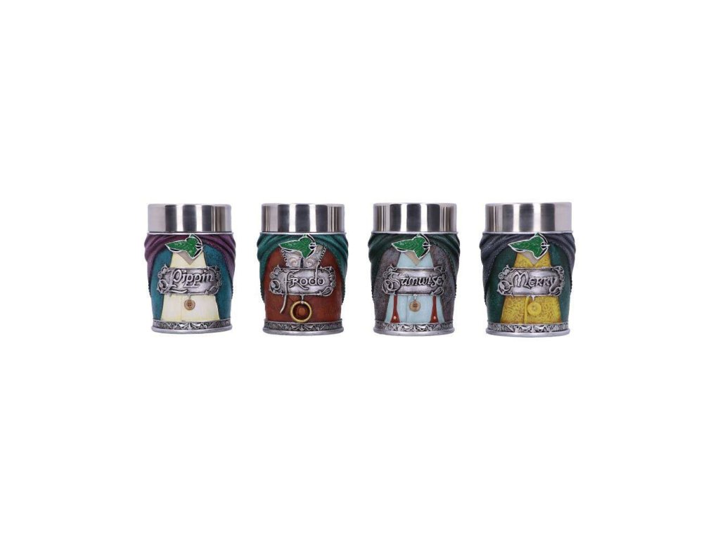 - 4 felespohár kiváló minőségű gyantából - Belseje rozsdamentes acélból készült - 4 különböző design: Frodó, Samwise, Meriadok, Pippin.Kiegészítő paraméterek