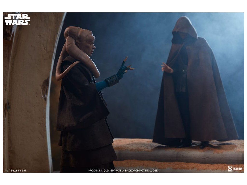 "Bunyó helyett a boltba mész? Ő nem egy Jedi." A Sideshow bemutatja a Bib Fortuna™ 1/6-os méretarányú figurát, amely egy kiváló minőségű gyűjtői darab. Ez a hivatalos Star Wars™ gyűjtőfigura szemet fog vetni a polcodra - és talán még egy-két ördögi boltot is megnézhetsz vele.Bib Fortuna Jabba the Hutt komornyikjaként a Tatooine bolygón lakik, és segít Jabba bűnbirodalmának irányításában. Ennek a ravasz Twi'leknek hosszú lekkuja van, ami fajának legjellegzetesebb tulajdonsága. Éles körmei, vörös szemei és háromszög alakú fogai baljós jelenlétet kölcsönöznek neki, ami illik a sivatagi bolygó sötét árnyékában betöltött státuszához.A Star Wars: A Jedi visszatér™ filmből ismert karakter által inspirált, teljesen tagolt, kiválóan pózolható Star Wars figura a filmbeli megjelenésének megfelelő szabású és szabású ruházatot visel. Biba Fortuna jelmeze egy kék tunika fölé húzott hosszú fekete köpenyt, kék kesztyűt és egy nagy mellkaspáncélt tartalmaz. Ezenkívül Biba Fortuna öltözéke fekete csizmát és csuklópáncélt is tartalmaz. A kiváló minőségű gyűjtői darabként az 1/6-os méretarányú Bib Fortuna™ figura két kézkészletet is tartalmaz, így a gyűjtők újraalkothatják a filmből ismert jellegzetes gesztusait. 1/6-os méretarányú Bib Fortuna™ figura a Sideshow Scum & Villainy termékcsaládjának legújabb tagja, amely a messzi-messzi galaxisból származó kedvenc alvilági karaktereket hozza el a legközelebbi otthoni tutajra. Tartsd nyitva a szemed, hogy még több híres karaktert találj ebben a veszélyesen vonzó, limitált példányszámú, kiváló minőségű figurákból álló sorozatban. 1/6-os méretarányú Bib Fortuna™ figurával egészítsd ki otthoni gyűjteményedet még ma a Sideshow kiváló minőségű gyűjtői darabjaként.Kiegészítő paraméterek