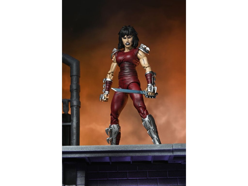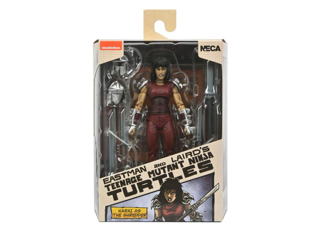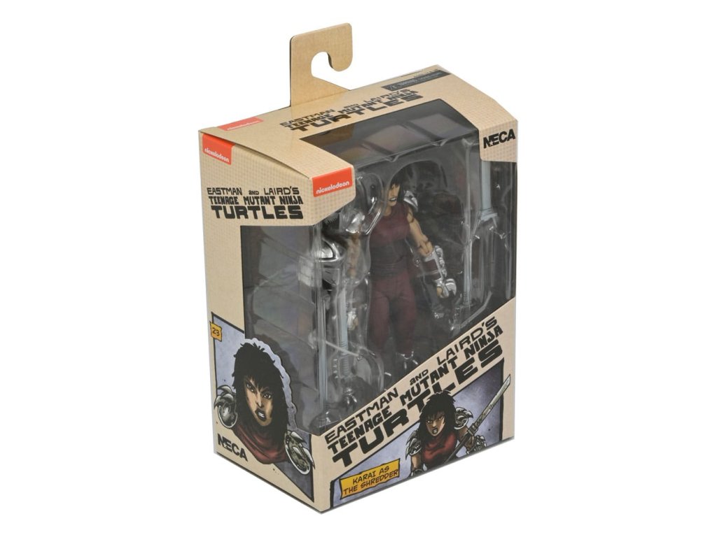 Az eredeti Tini Mutáns Nindzsa Teknőcök képregények alapján Eastman és Laird a Mirage Studios-tól! Ahogy a 'Város a háborúban' című történetben láthatjuk, Karai, a Foot klán új vezetője egyszerre félelmetes ellensége és gyenge szövetségese a Teknőcöknek. Ez a NECA-tól származó 7 hüvelykes akciófigura maszkos és álarc nélküli fejet, extra kezeket és halálos nindzsafegyvereket tartalmaz! Gyűjtőbarát csomagolásban, Kevin Eastman eredeti grafikájával a dobozon.