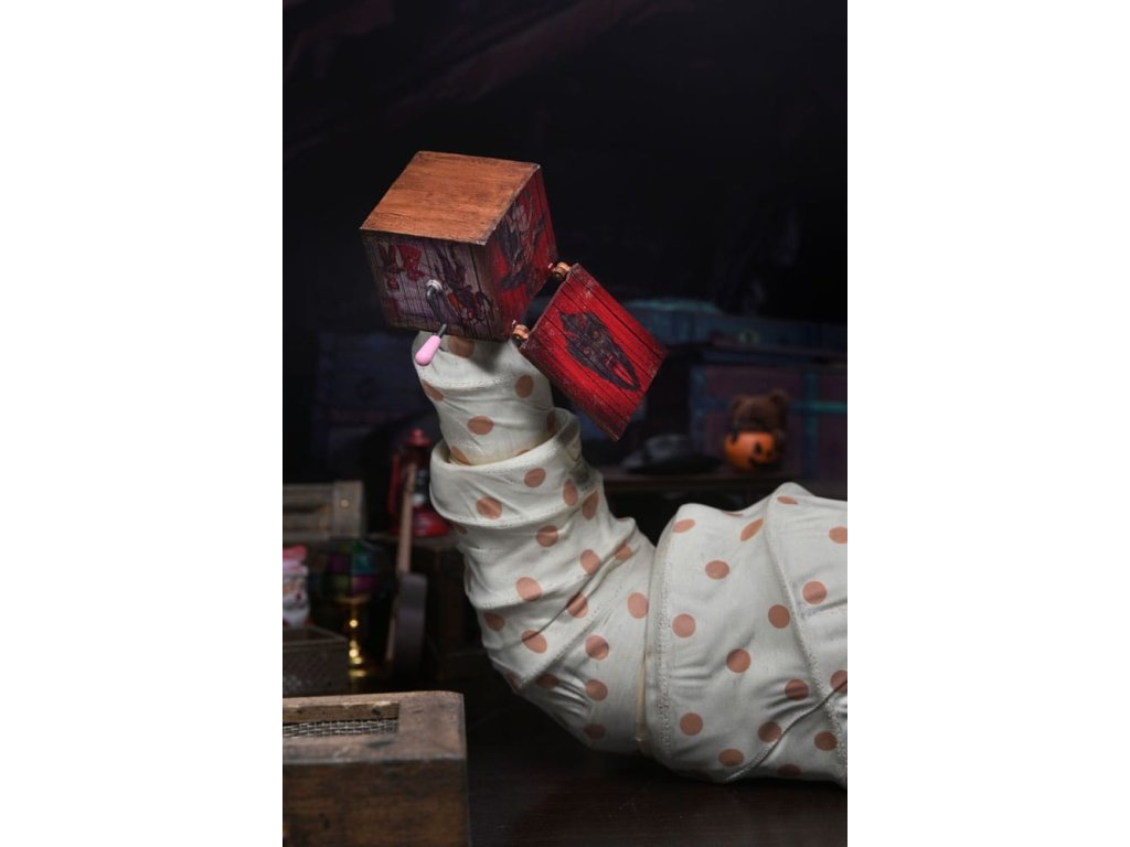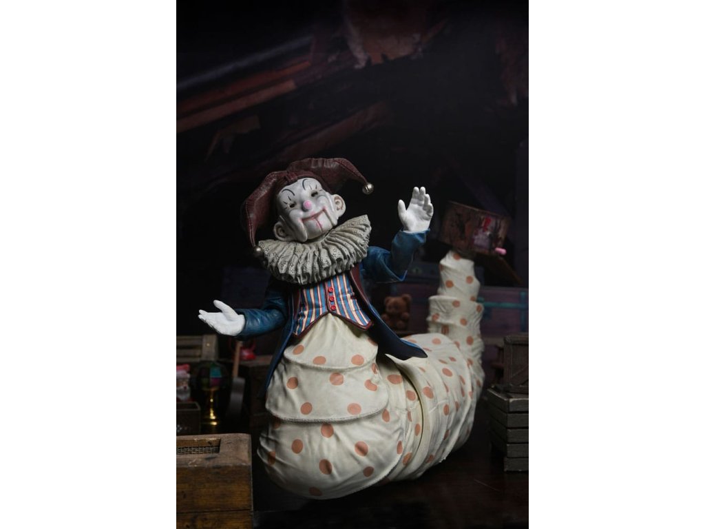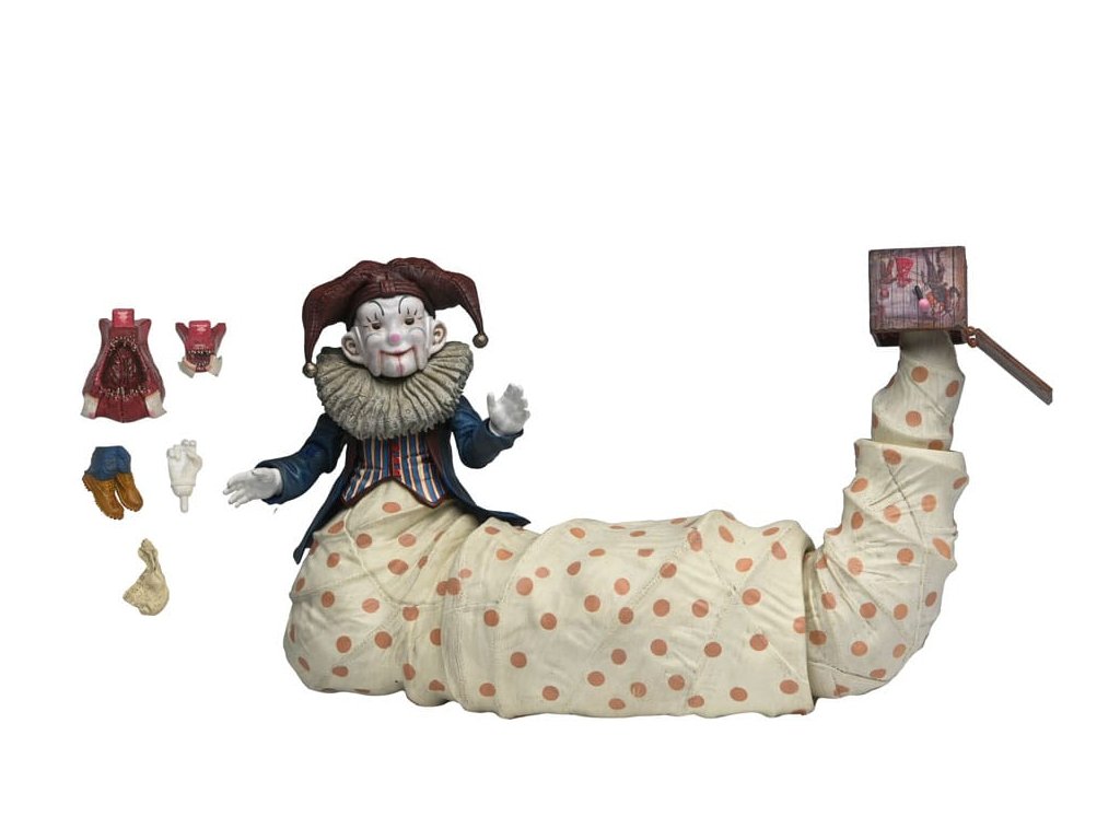 A 2015-ös karácsonyi horrorfilm, a Krampusz gyilkos csuklyás figurája mostantól egy NECA deluxe akciófigura, aki készen áll arra, hogy félelmet keltsen. A több mint 10 hüvelyk hosszú, rendkívül részletes Der Klown figura tökéletes ijesztő kiegészítője az éves horrorkarácsonyodnak. Számos tartozékkal érkezik. Ez a figura pontosan úgy néz ki, mint hátborzongató társa a filmben, és mozgatható farokkal rendelkezik, amely a csuklyájában végződik, és csuklóval van felszerelve. A figura három cserélhető, mozgatható sapkával ellátott szájjal is rendelkezik, így a filmből ismert különböző fenyegető arckifejezéseit is megmutathatod. További tartozékok közé tartozik egy extra kar, cserélhető nyakfodrok, egy zsebkendő és Jordan lábai, amelyek a szörny nyitott szájába csatlakoznak, hogy felfalhassa pajkos áldozatát. Ez a deluxe Der Klown figura egy dobozban érkezik, amelynek ablakából kivágott ablakon a filmbeli csuklyája látható.Kiegészítő paraméterek