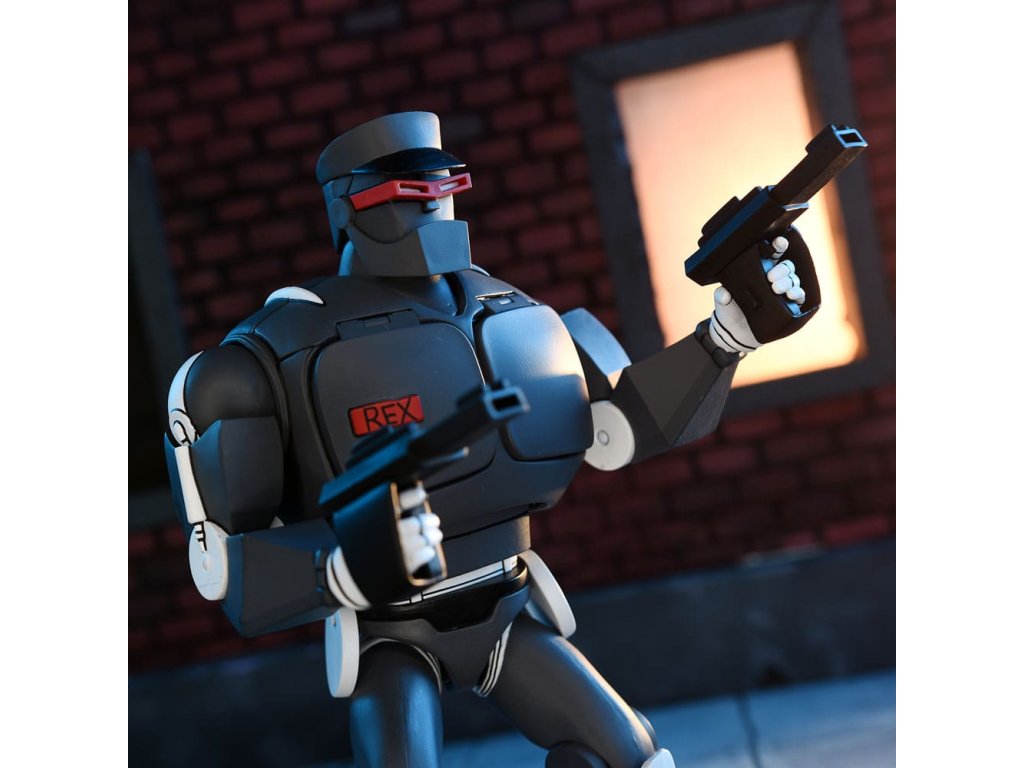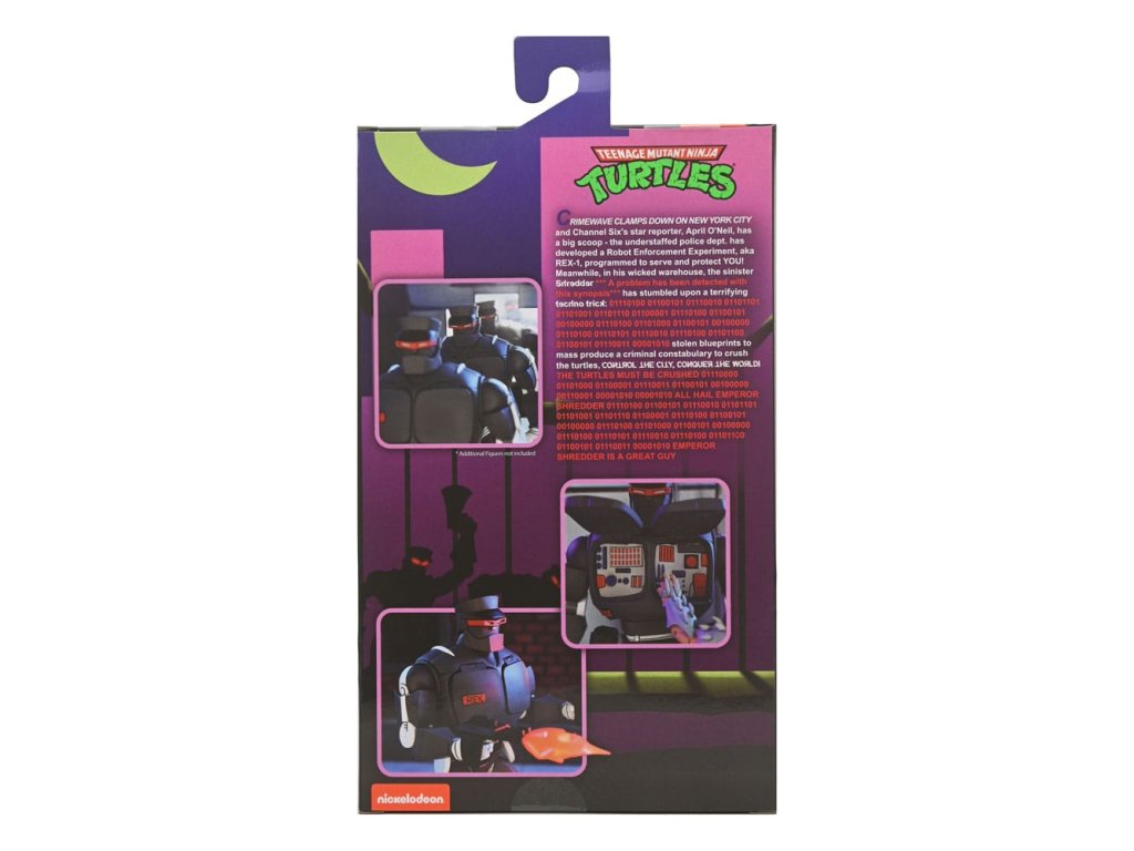 A klasszikus 1980-as évekbeli rajzfilmsorozat alapján készült Tini mutáns nindzsa teknőcök! Az első robotrendőr, akit a "Robotvégrehajtási Kísérlet" néven ismertek, most ördögi másolatot kapott. Shredder Gonosz Rex-1 robotok serege itt van, hogy elfoglalja a játékpolcodat, és egyszer s mindenkorra véget vessen a Teknőcöknek! Ez a 7 hüvelykes méretarányú akciófigura a káoszra van programozva. Gyűjtőbarát csomagolásban érkezik, amely a VHS-kazetták stílusát idézi.Kiegészítő paraméterek