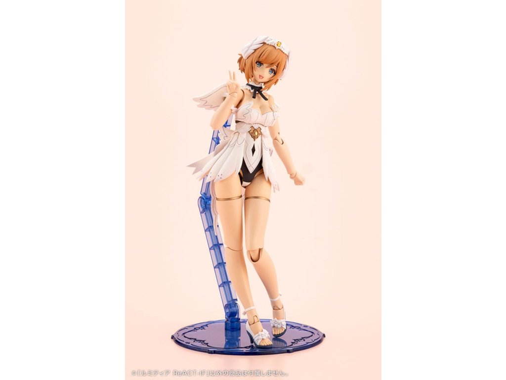 Az ARCANADEA sorozatból érkezik az angyali alakú Kedvesek, Lumitea, új ruhában! A modell egy "iF" környezetben mutatja őt a szokásos fantáziaruha helyett hétköznapi ruhájában. A csomagban négy újonnan faragott arcrész, köztük egy kacsintás, valamint dupla csuklós karok és lábak találhatók, amelyek kombinálhatók a normál Lumitea modellel. A hosszú szoknya egy darabból készült, tiszta fehér színben, az átlátszó anyagot utánozva, amely a rövid szoknya megjelenéséhez le is vehető. A modellben elhelyezett 3 mm-es csatlakozó ízületek lehetővé teszik a Kotobukiya eredeti sorozatának különböző modelljeihez való igazodást. A modell Lumitea egy teljesen új változatát hozza el, amelyet a videojátékokban és a Vtuberen szereplő karakterterveiről is ismert népszerű illusztrátor, necömi tervezett és felügyelt. A készlet számos további tartozékot és funkciót tartalmaz, többek között előre nyomtatott arcokat, különböző szoknyákat, cserélhető kar- és lábrészeket, 11 féle PVC kézalkatrészt, bónusz alkatrészeket, széles mozgástartományt, HEXA G-R.A. csatlakozókat.M. a modell hátulján, kompatibilitás az M.S.G, Frame Arms és Frame Arms Girl sorozat alkatrészeivel, ülőpóz, matricák a különböző arckifejezések létrehozásához, speciális állvány és nyakrészek a Frame Arms Girl és Megami Device sorozat fejeinek összekapcsolásához.Kiegészítő paraméterek