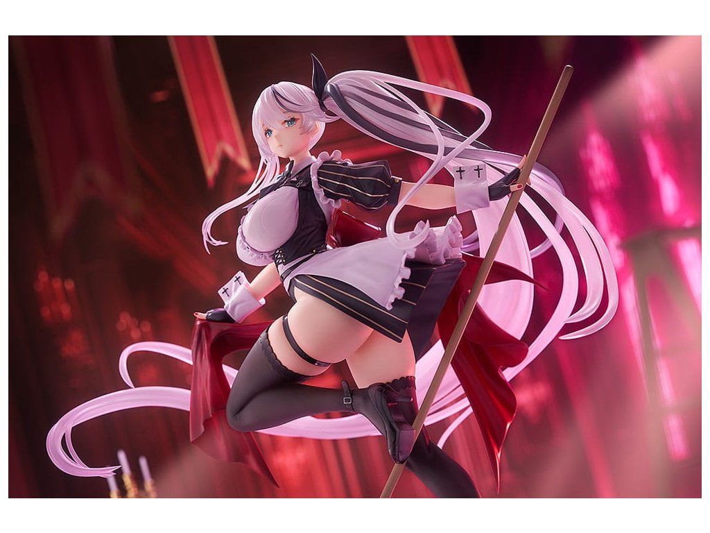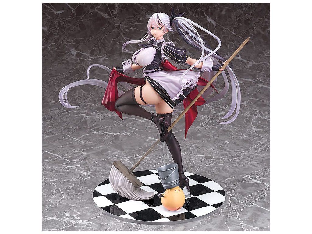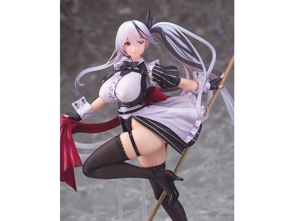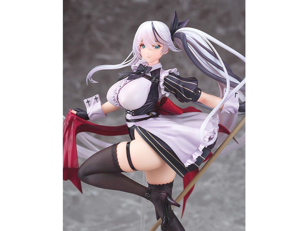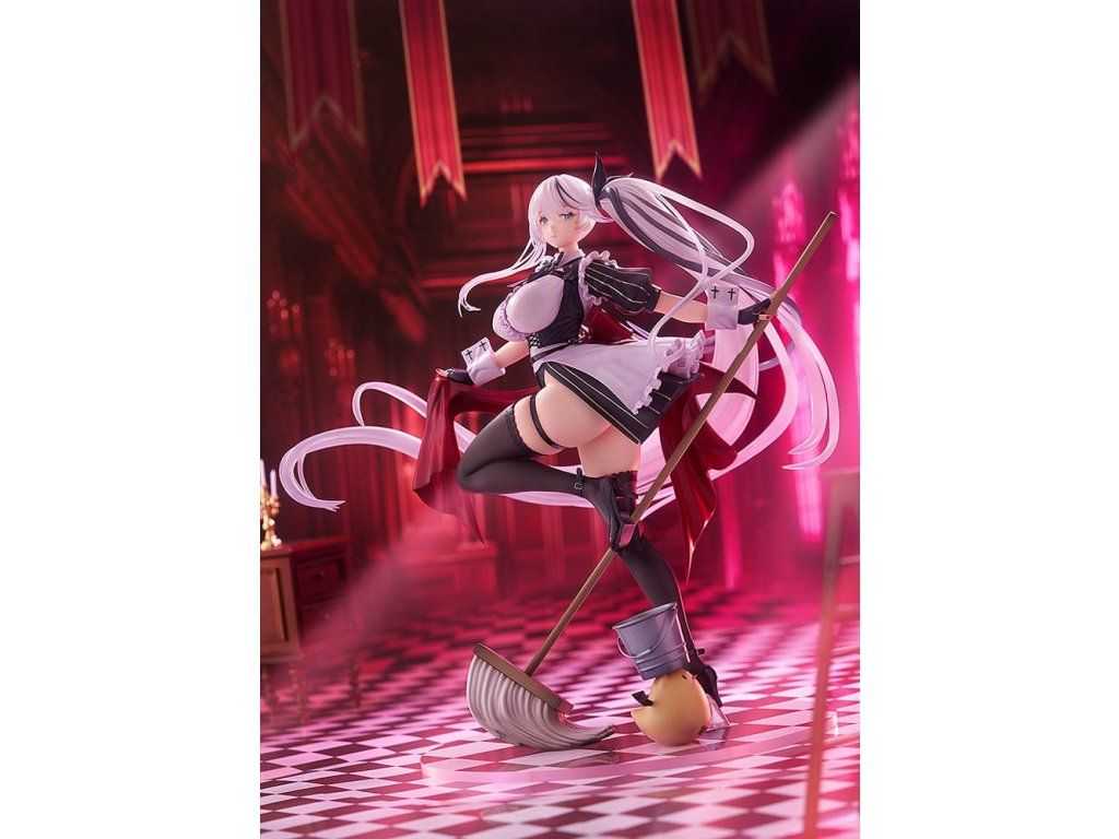 A népszerű Azur Lane játékból érkezik egy 1/7-es méretarányú figura a Vasvér frakció Thüringenjéről. A figura Thüringent holdfényes takarítójelmezbe öltözve ábrázolja, takarítási tevékenységére összpontosítva. Hosszú, ezüstszínű hajához áttetsző részeket használtak, amelyeket gondosan részleteztek a szolgálati ruha finom fodraival és részleteivel együtt. A lenyűgöző figura elegáns és merész tartása és arckifejezése miatt biztosan sok szempontból megragadja a rajongókat. A fényűző talapzat olyan részleteket is tartalmaz, mint egy kis vödör és manjua. Mindenképpen egészítsd ki gyűjteményedet Thüringennel!Kiegészítő paraméterek