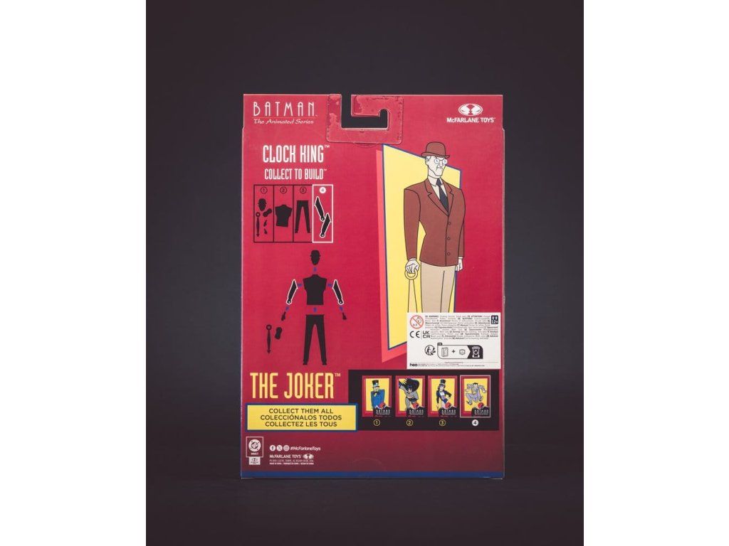 Egyetlen név sem kelt olyan rettegést Gotham polgárainak szívében, mint JOKER. Egy olyan városban, ahol hemzsegnek az életnagyságú bűnözők, ez a mindig mosolygós gonosztevő egyedül áll. Az erkölcsi iránytű nélküli pszichopata, JOKER, akinek valódi neve és személyazonossága teljesen ismeretlen, mészfehér bőréről, zöld hajáról és az arcára húzódó állandó vigyorról ismert. Ebben a bohócban azonban semmi vicces nincs; csak mások szenvedésében talál humort - Hihetetlenül részletes, 6" (kb. 15 cm) méretarányú figura a BATMAN: THE ANIMATED SERIES™ alapján - Pózoláshoz és játékhoz való csuklós kialakítással - A tartozékok között 2 cserélhető fejportré és 8 további kéz szerepel - Tartalmazza az Órakirály figura összeállításához szükséges alkatrészeket. Gyűjtsd össze a teljes hullámot, hogy összeállíthasd a CLOCK KING figurát - Tartalmaz egy gyűjtői kártyát, melynek előlapján a karakter illusztrációja, hátlapján pedig életrajz található - Gyűjtsd össze az összes McFARLANE TOYS™ figurát a BATMAN: THE ANIMATED SERIES™-ból - Ez a Chase változat kék ruhában (kép nem elérhető).Kiegészítő paraméterek