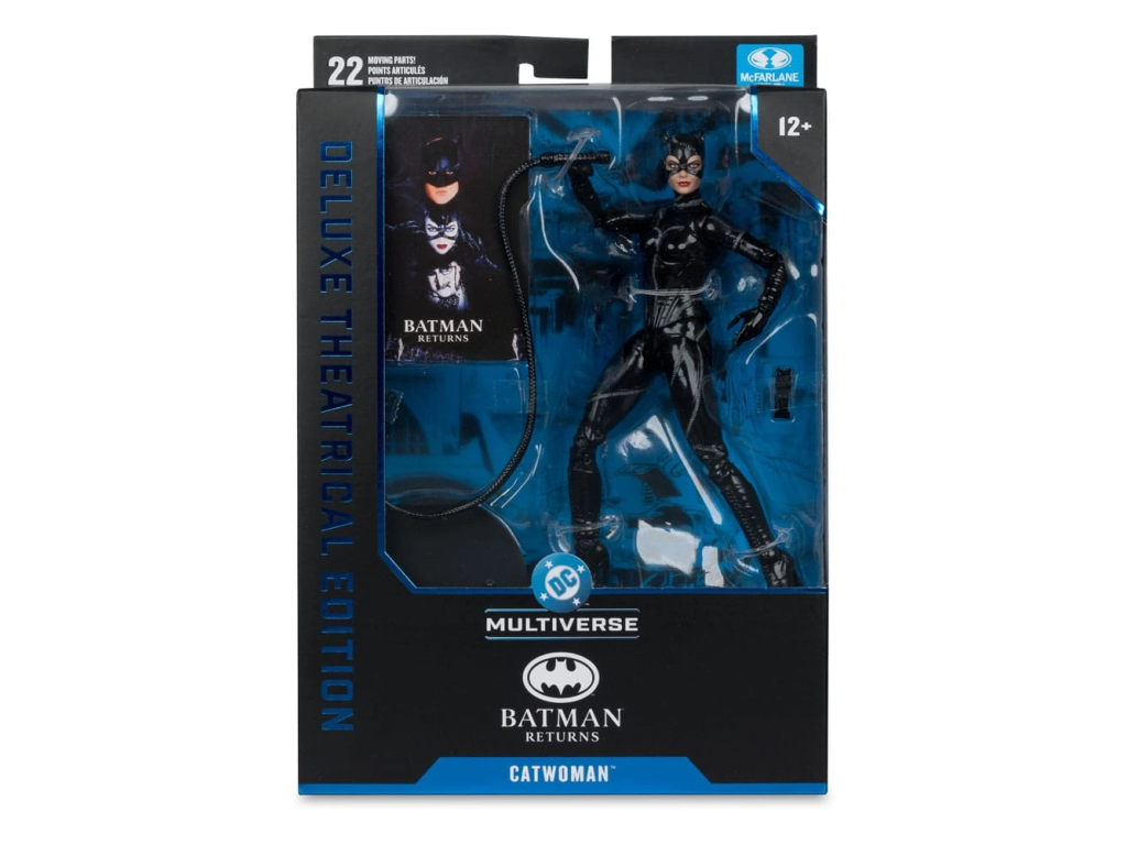 A "Batman™" folytatásában a sapkás igazságosztó eddigi legádázabb ellenfeleivel száll szembe: a gonosz Pingvinnel™ és a kanyargós és titokzatos Macskanővel™. Hihetetlenül részletes 7" (kb. 17 cm) figura, amely az ikonikus 1992-es BATMAN RETURNS film alapján készült. Ultra Articulation technológiával tervezték, akár 22 mozgó alkatrésszel a teljes pózolási és játéklehetőségekért. A tartozékok közé tartozik egy sokkoló, egy ostor és egy állvány a figura bemutatásához. Tartalmaz egy gyűjthető művészeti kártyát, amelynek előlapján a figura illusztrációja, hátlapján pedig a figura életrajza található. A Macskanő egy Deluxe Theatrical Edition ablakos dobozban kerül bemutatásra, kék fólianyomattal. Gyűjtsd össze az összes McFarlane Toys DC Multiverse figurát.Kiegészítő paraméterek