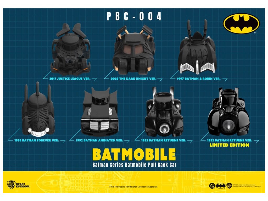 Batmobil ikonok Mini változatban Letöltés Beast Kingdom által! A nyújtható autó sorozat visszatér 6 klasszikus Batmobil dizájnnal + 1 rejtett kiadással, melyeket a Batman filmek és animációk ihlettek. Minden autó részletes szobrászattal és felhúzható motorral rendelkezik - csak húzd meg és engedd el a gyors indításhoz. Tökéletes gyűjtéshez, játékhoz és kiállításhoz! Tartalmazza a Batman visszatér, az animációs sorozat, a Batman Forever, a Batman és Robin, a Sötét lovag és az Igazság Ligája, valamint egy fényes ezüstszínű változatot 1992-ből (1/72-es esély). Gyűjtsd össze mindet, és élj át saját kalandot a Batmobillal!Kiegészítő paraméterek