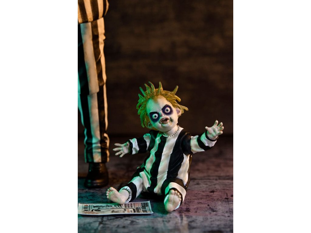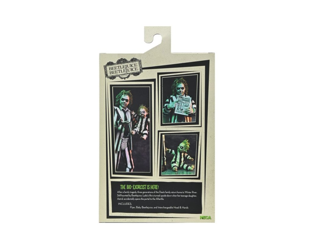 A legtöbbet visszatérő szellem visszatért! Tim Burton 2024-es filmjének folytatásából, a Beetlejuice Beetlejuice, a híres bio-ördögűző visszatér egy teljesen artikulált figura formájában. Most Beetlejuice túlvilági gondozó, és arra készül, hogy újra férjhez menjen Lydiához, hogy megszabaduljon volt feleségétől, Delores-től, és végre visszatérhessen az élők világába. A klasszikus fekete-fehér csíkos öltönyébe öltözött NECA Ultimate Beetlejuice figura 7 hüvelyk magas, és cserélhető fejeket és karokat, egy Betelgeuse röpdét, valamint egy imádnivaló Beetlejuice babaformájú figurát tartalmaz! Gyűjtőbarát ablakos csomagolásban érkezik, elöl kinyitható patenttal.Kiegészítő paraméterek