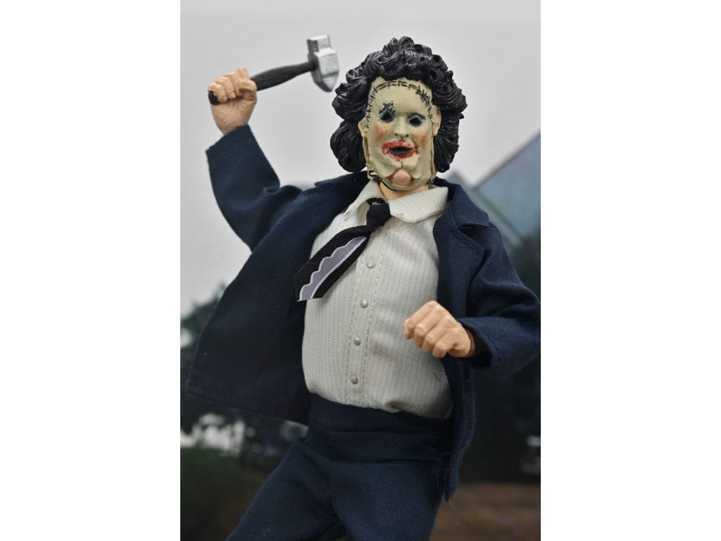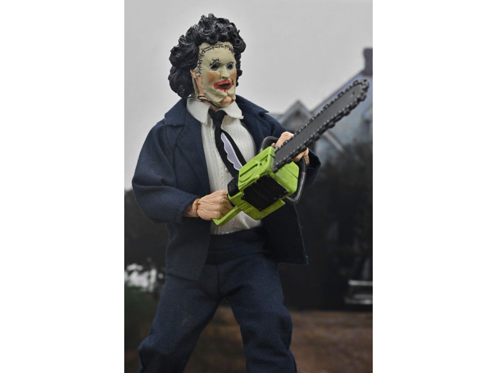 Bőrpofa jubileumi figura a Texasi láncfűrészes mészárlás című filmből, ruhában (Pretty Woman maszk) az 50. évfordulóra, 20 cm