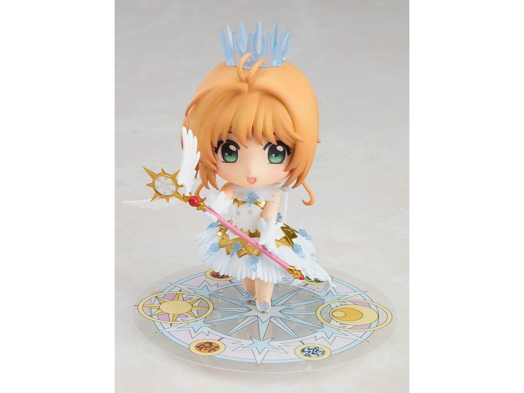 A Cardcaptor Sakura: Clear Card című anime sorozatból érkezik a főszereplő, Sakura Kinomoto Nendoroidja a 'CLEAR' nyitójelenetének ruhájában! Három arckifejezéssel érkezik, köztük egy békülékeny, egy csukott szemű és egy félénk arckifejezéssel! A nyitójelenetnek megfelelően álompálcával, FLIGHT alkatrészekkel és egy varázskörrel érkezik, így Sakurát többféle pózban is ábrázolhatod!Kiegészítő paraméterek