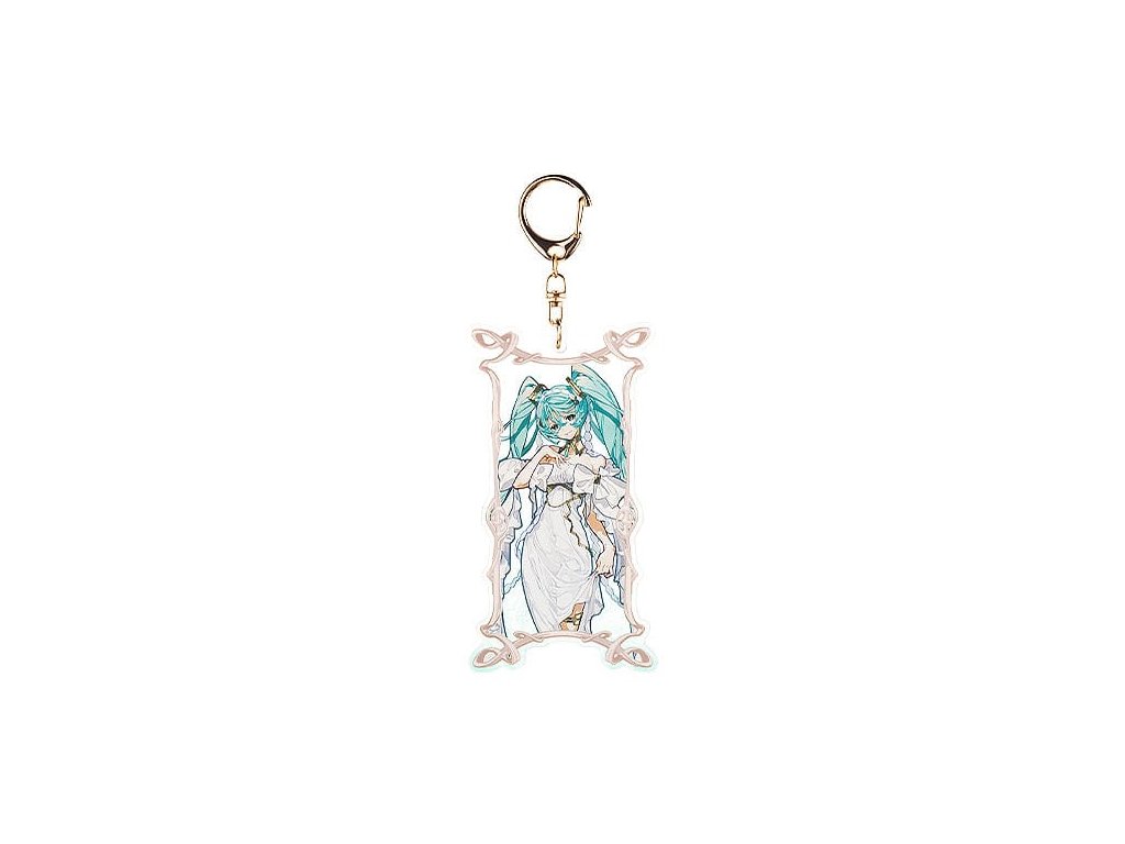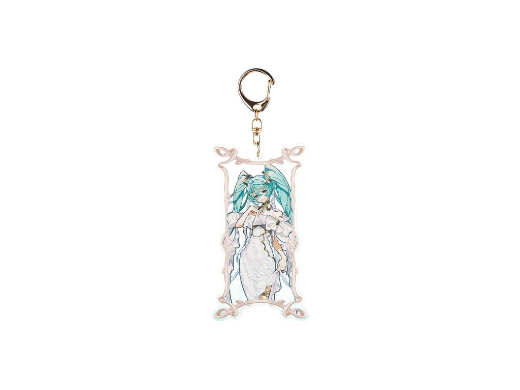 Bemutatkozik Hatsune Miku és Yoneyama Mai! Hatsune Miku, akit Yoneyama Mai illusztrátor tervezett, mostantól része az árukollekciónak. Miku istennőszerű ruhát visel egy lenyűgöző háttér előtt. Az eredeti illusztráció egyedi hangulatát a nagy felbontású nyomtatás és a bonyolult gyártási technikák kombinációjával sikerült hűen megörökíteni. A kulcstartó átlátszó akrilból készült, és egy keretbe foglalt különleges pillanat benyomását kelti. Feltétlenül egészítse ki gyűjteményét a kedves mosolyú Mikával!