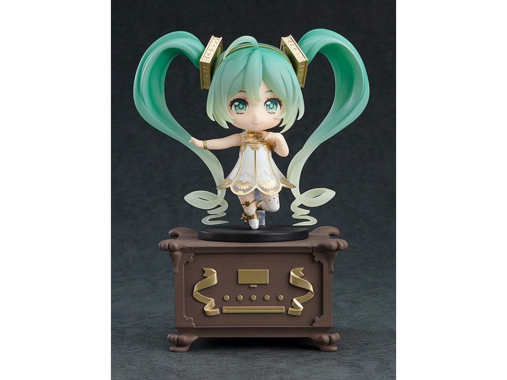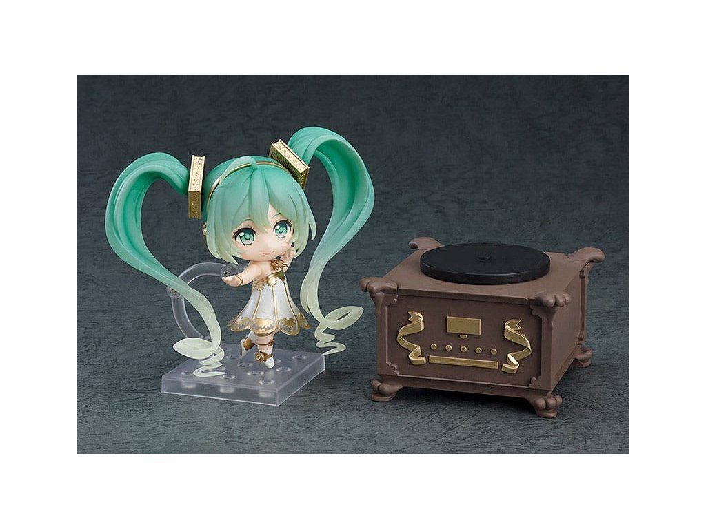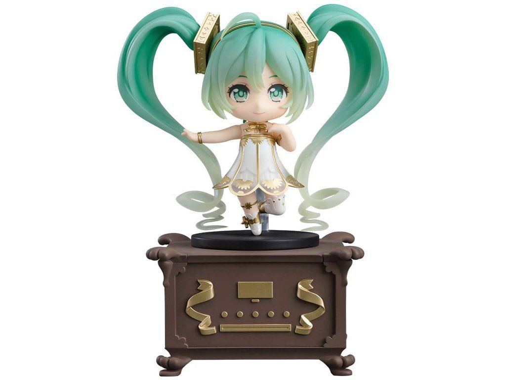 A "Character Series with Vocals 01: Hatsune Miku" című sorozatból érkezik a Nendoroid Hatsune Miku, amely a "Hatsune Miku Symphony 2020 ~5th Anniversary~" című teljes zenekari koncert fő látványtervén alapul. A Nendoroid hűen visszaadja az eredetileg Rella által illusztrált gyönyörű dizájnt. Két arclemezzel rendelkezik, köztük egy mosolygós és egy csukott szemű arckifejezéssel. Gramofon ihlette ruháját részletesen újraalkották, átlátszó részekkel és arany festéssel. A Nendoroid egy doboz alakú állványt is tartalmaz, amely tárolóhelyként használható. Ezen kívül egy kézkapcsoló részt is tartalmaz, amely a Nendoroid Hatsune Miku: Symphony 2018-2019 Ver. (külön megvásárolható) Nendoroid Hatsune Miku: Symphony 2018-2019 Ver.-rel együtt használható kézen fogva tartás megjelenítésére. Mindenképpen egészítsd ki a gyűjteményedet!Kiegészítő paraméterek
