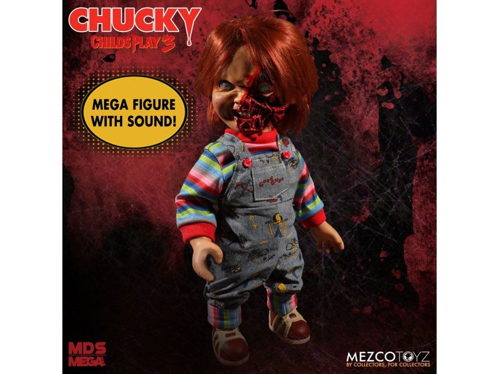 Chucky visszatért az életbe! A Play Pals gyárban történt baleset miatt Chucky új életre kelt, és új lehetőséget kapott, hogy irányítsa a gyanús lelkeket. A Mezco Designer Series Talking Chucky with Pizza Face egy vadonatúj fejmodellel büszkélkedhet, amely Chucky eltorzult arcát ábrázolja, miután találkozott a Kaszás kaszájával az "Ördög barlangjában". Akárcsak a filmben, Chucky is rengeteget beszél, a tipikus "Szia, Chucky vagyok, és a barátod leszek a végsőkig!"-tól kezdve a sokkal baljósabb mondatokig. A tipikus "Jófiúk" overálban és csíkos ingben Chucky 11 ponton keresztül mozgatható, jellegzetes narancssárga hajával és valósághű üvegszemével van felszerelve. Fel van szerelve egy pisztollyal is, amely szépen illeszkedik a jobb kezébe. A Mezco Designer Series Talking Chucky with Pizza Face 15 hüvelyk magas, és a film által inspirált, gyűjtőbarát kirakatban érkezik. 3 x LR44 elemet igényel, amelyek a csomagban találhatóak.Kiegészítő paraméterek
