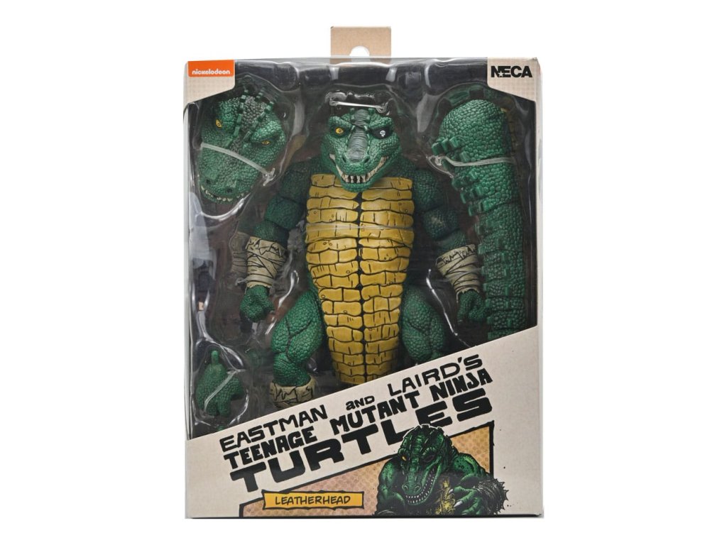 Bemutatjuk a NECA Teenage Mutant Ninja Turtles Mirage Comics kollekciójának egyik legnagyobb figuráját! Ez a deluxe Crocodile Leatherhead figura elképesztő részletekkel és takaróval biztosan kiemelkedik a TMNT gyűjteményedből. A 7 hüvelykes méretarányú Leatherhead két különböző fejjel rendelkezik, mozgatható állkapoccsal, csuklós farokkal és cserélhető kezekkel! Gyűjtőbarát csomagolásban, Kevin Eastman eredeti illusztrációival.Kiegészítő paraméterek