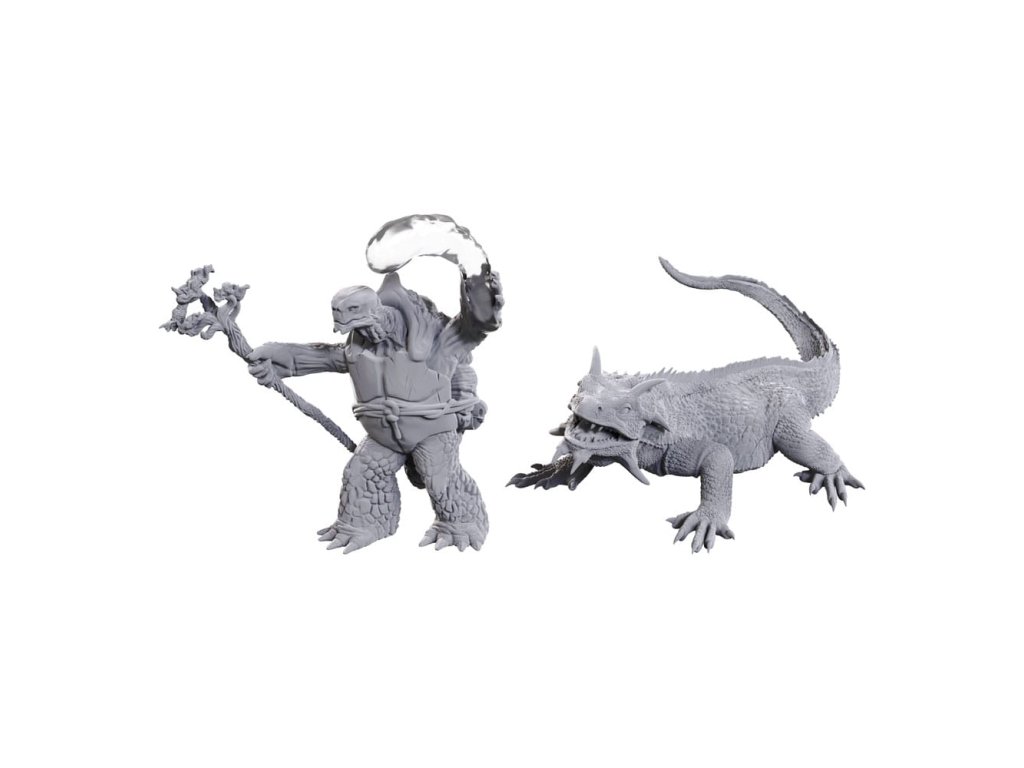 D&D Nolzur's Marvelous Miniatures Festetlen miniatűrök Tortle Druida és Wild Shape Giant Lizard (óriásgyík)