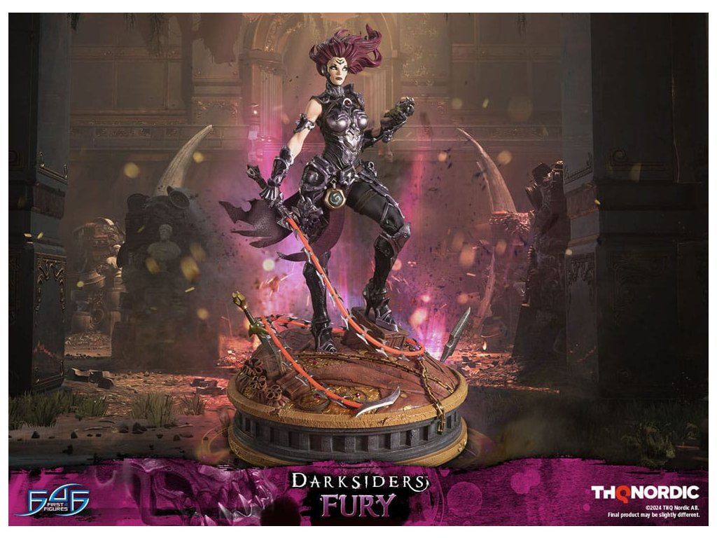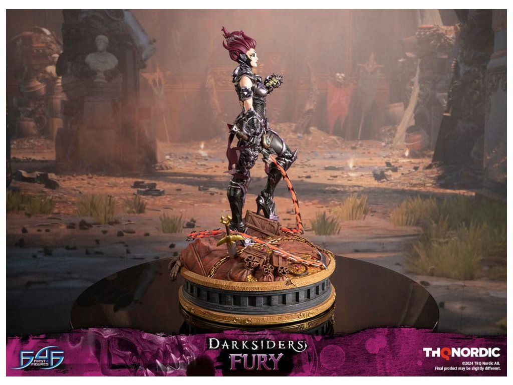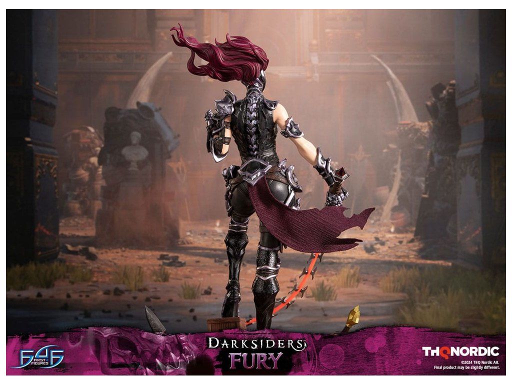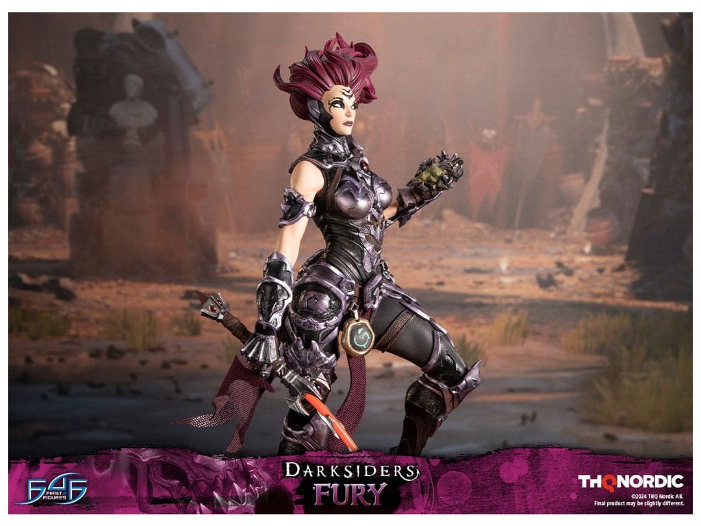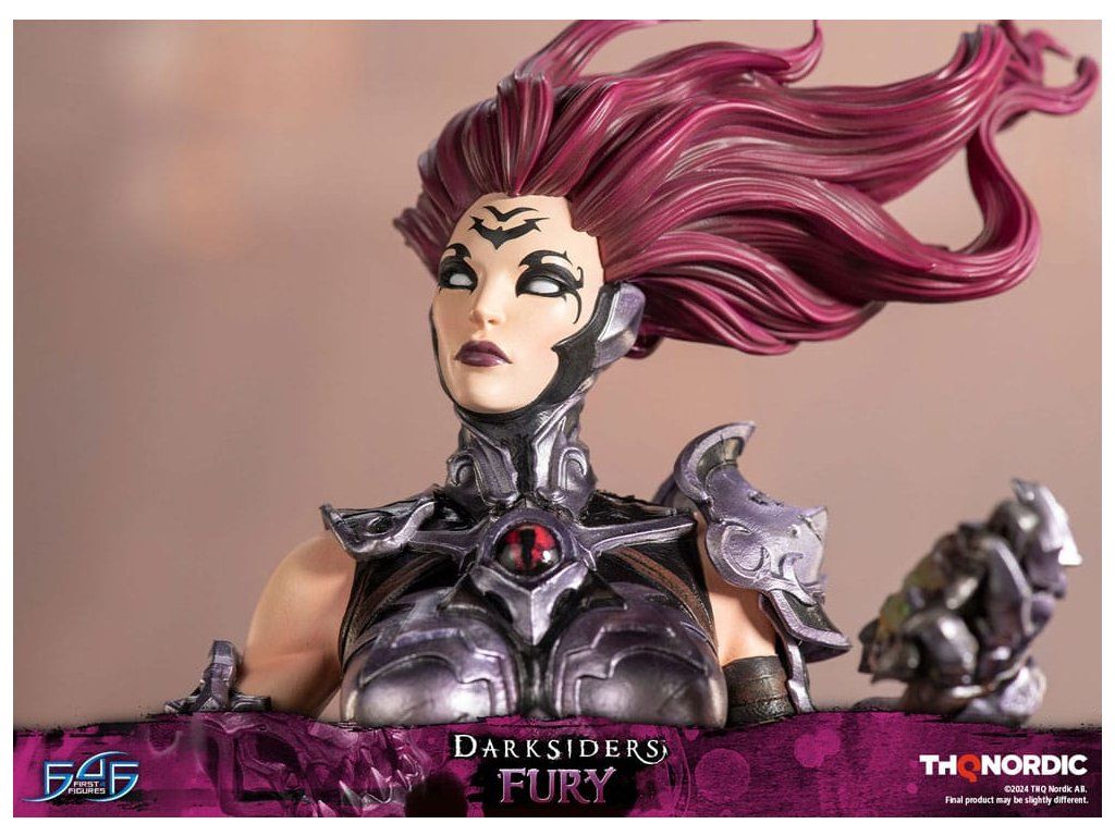 A szobor koncepcióját a Hét Halálos Bűn egyik tagjával, Avarice főnökével való küzdelem ihlette. Fury győztesként van ábrázolva, mintha csak legyőzte volna őt, bal kezében a Sin Talisman-talizmánnal hadonászva, hogy csapdába ejtse őt. Jobb kezében tartja ostorát, a Megvetés Tüskéit. A szobor gondosan ábrázolja Fury sötét, durva és bonyolultan kidolgozott páncélját, az övére erősített Hídkővel együtt. Ezenfelül a Spikes of Contempt és a Bridge Stone sötétben világító funkcióval rendelkezik. A talapzaton Avarice kincsekkel teli zsákja látható, míg az aljzatot a múzeum területének arany díszítésű határai ihlették. A Darksiders - Fury a következőket tartalmazza: - Darksiders - Fury műgyanta festett szobor - A Darksiders művészeti stílusa által inspirált, rendkívül részletes alap - A Spikes of Contempt és a Bridge Stone világító funkció - Korlátozott példányszámú számozás és hitelesítő kártya.Kiegészítő paraméterek