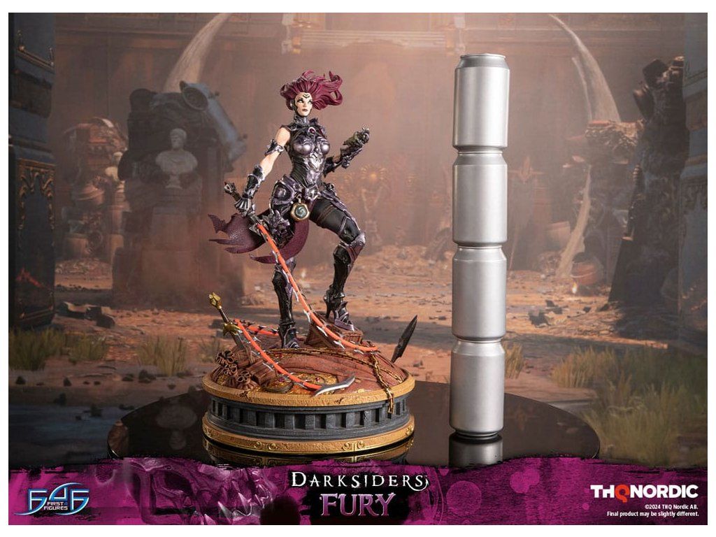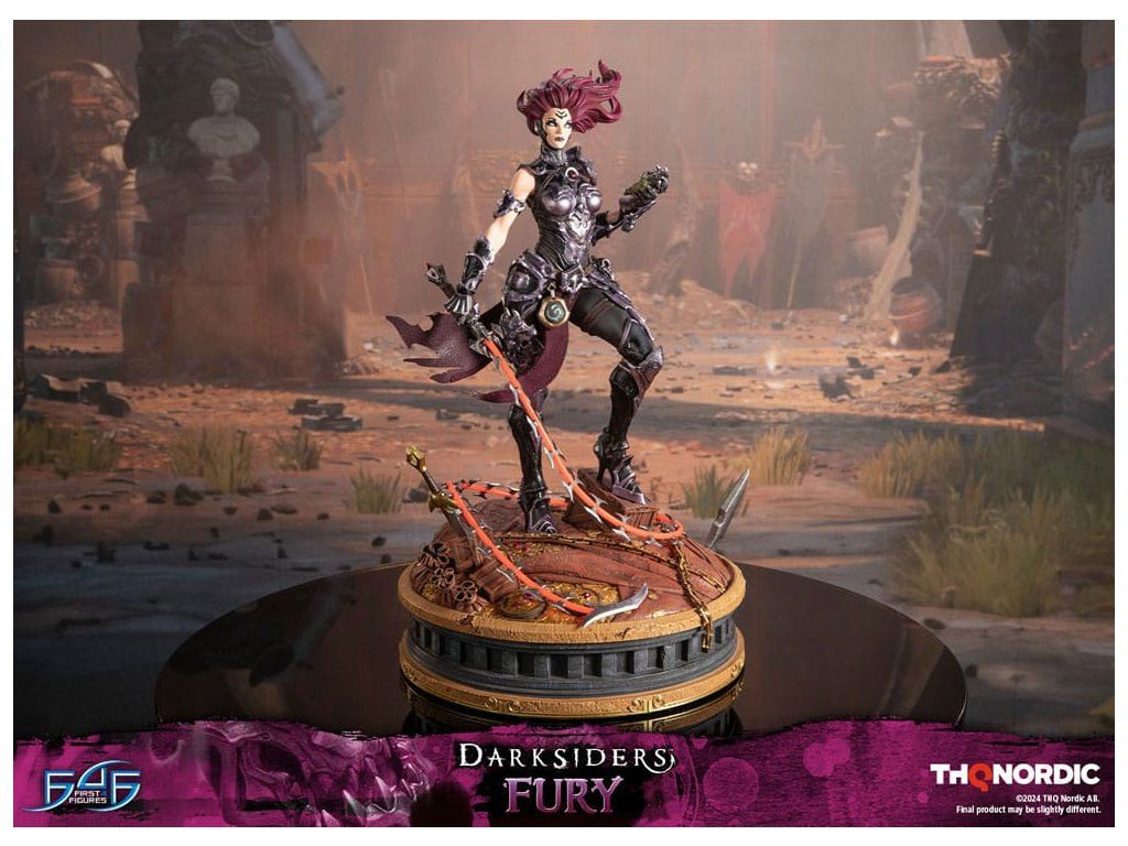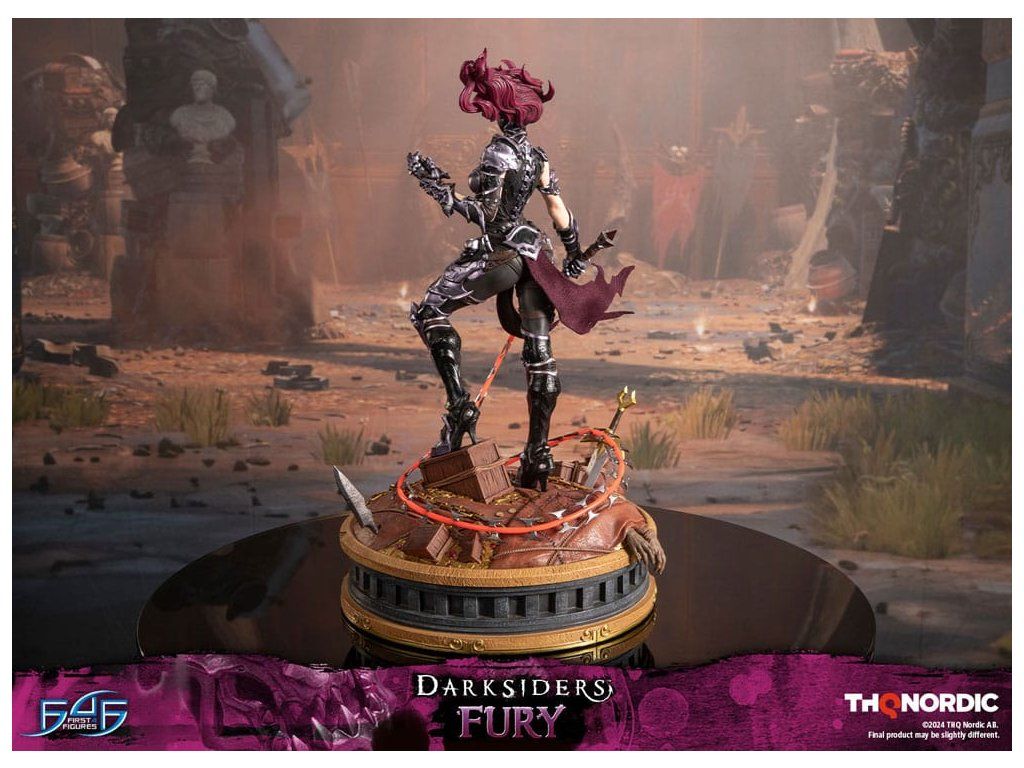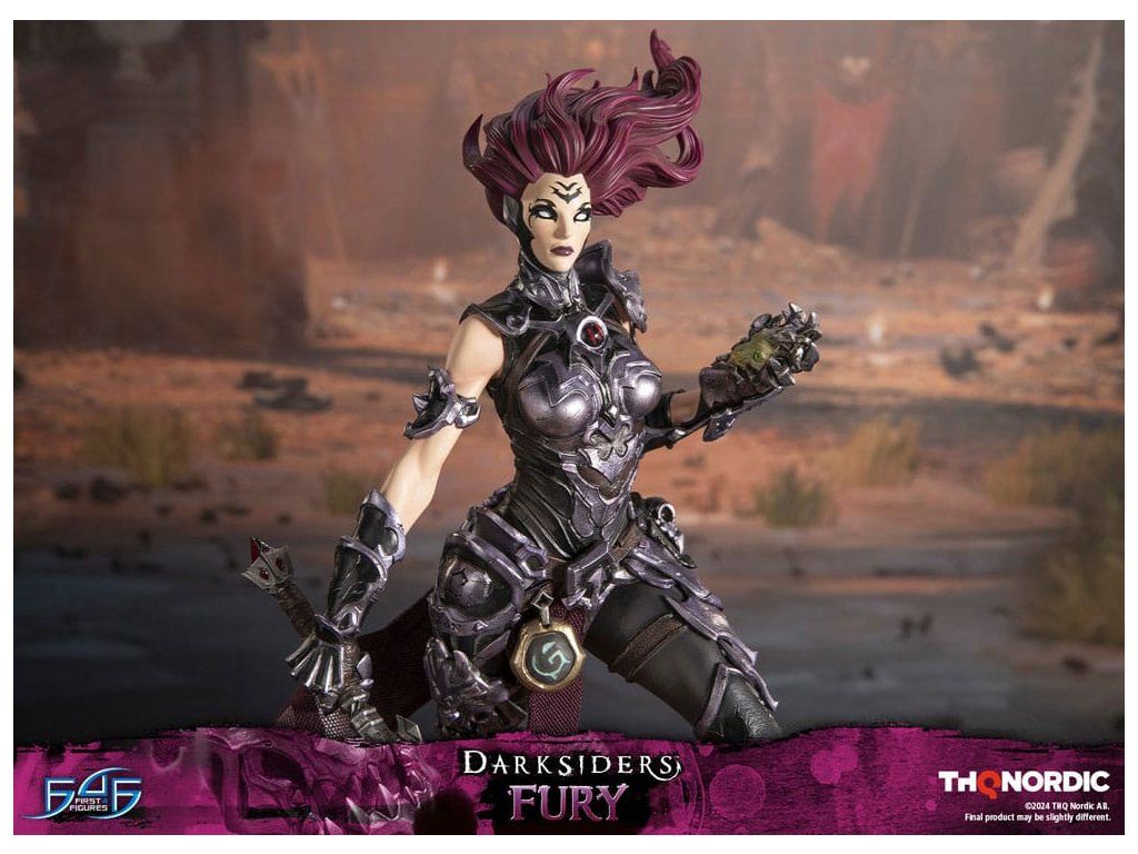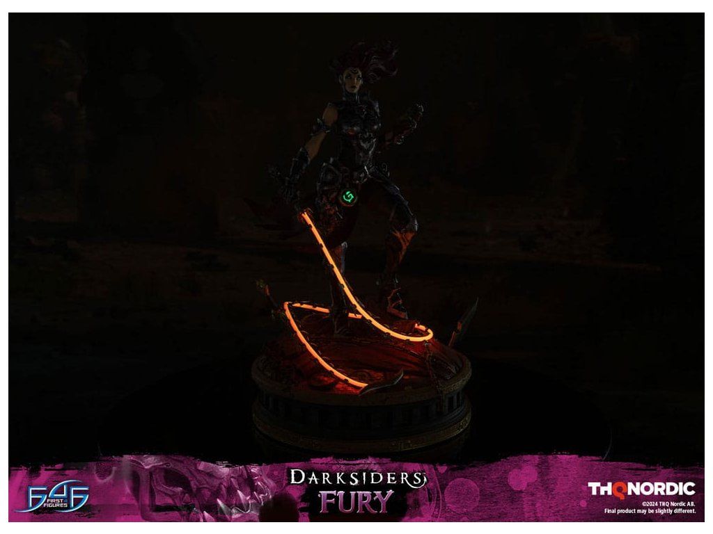 A szobor koncepcióját a Hét Halálos Bűn egyik tagjával, Avarice főnökével való küzdelem ihlette. Fury győztesként van ábrázolva, mintha csak legyőzte volna őt, bal kezében a Sin Talisman-talizmánnal hadonászva, hogy csapdába ejtse őt. Jobb kezében tartja ostorát, a Megvetés Tüskéit. A szobor gondosan ábrázolja Fury sötét, durva és bonyolultan kidolgozott páncélját, az övére erősített Hídkővel együtt. Ezenfelül a Spikes of Contempt és a Bridge Stone sötétben világító funkcióval rendelkezik. A talapzaton Avarice kincsekkel teli zsákja látható, míg az aljzatot a múzeum területének arany díszítésű határai ihlették. A Darksiders - Fury a következőket tartalmazza: - Darksiders - Fury műgyanta festett szobor - A Darksiders művészeti stílusa által inspirált, rendkívül részletes alap - A Spikes of Contempt és a Bridge Stone világító funkció - Korlátozott példányszámú számozás és hitelesítő kártya.Kiegészítő paraméterek