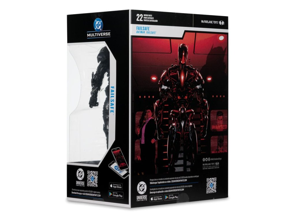 Miközben Batman™ elkészítette a szükséges terveket, hogy megállítsa az Igazság Ligája tagjait, ha valamelyikük fellázadna (ez a folyamat később a Bábel tornya incidenshez vezetett), Batman mesterséges személyisége, Zur-En-Arrh™ aktiválódott, létrehozva egy androidot, amely képes lenne megállítani őt, ha Batman valaha is öngyilkos lenne. Zur-En-Arrh létrehozta Failsafe-et, felhasználva különböző kibernetikus gonosztevők technológiáját, akikkel az Igazság Ligája™ korábban találkozott, köztük Amazo™-t. Failsafe sok éven át szunnyadt a Batcave-ben, amíg Pingvin meg nem színlelte saját halálát, és gyilkossággal vádolta meg Batmant. Bár programozásában voltak rendelkezések Batman megvádolására, ezeket sajnos a néhai Alfred Pennyworth™-nek kellett aktiválnia.- A Megafigurák nagyméretű figurák, amelyek megfelelnek hét hüvelykes DC Multiverse figuráiknak- Ultra artikulációval tervezték, akár 22 mozgó alkatrésszel a teljes körű pózolás és játék érdekében- Fegyveres kiegészítőt és alapot tartalmaz a bemutatáshoz- Gyűjtői kártyát tartalmaz, amelynek előlapján a figura fényképe, hátlapján pedig a karakter életrajza található- Gyűjtsd össze az összes McFarlane Toys DC Multiverse figurát!Kiegészítő paraméterek