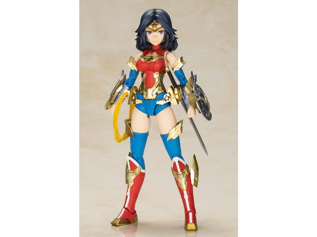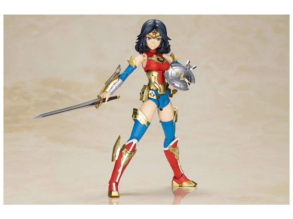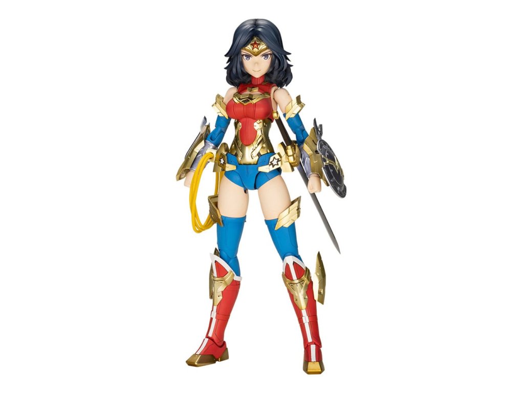 A DC három nagy karakterének egyike, Wonder Woman visszatér műanyag modellkészletként, amely a szeretett Humikane Shimada új, eredeti illusztrációján alapul! Ez a Different Color változat a Wonder Woman új színváltozata. Három arcrész (normál frontális, normál bal oldali és sikító) tartozik hozzá. Ez a modell tartalmaz egy kardot, pajzsot, az Igazság Lassóját, különböző páncéldarabokat, pajzs-effekteket és egy egyszerű alapot. Minden egyes ízület széles mozgástartományban mozog, lehetővé téve különböző pózokat, például a képregényekből ismert keresztbe tett karokat. *Ez a termék egy műanyag modellkészlet, amely összeszerelést igényel. Mi az a 'Lány kereszttel'? A Girl with a Cross egy kollaboratív sorozat, amely a Kotobukiya eredeti 'Girl with a Frame' tartalmát és fejlett technológiáját ötvözi más ismert médiatartalmakkal. A készletek többszínű alkatrészeket és arcrészeket tartalmaznak, amelyek előre nyomtatott tampográfiával vannak ellátva, így könnyen összeszerelhetők festés nélkül. A készletek 3 mm-es illesztésekkel és PVC kézrészekkel rendelkeznek, így kompatibilisek a legtöbb M.S.G Weapon Unit, Girl with Frame és Frame Arms sorozatú fegyverrel és páncéllal. A Girl with Cross modellek kompatibilisek a jelenleg kapható Girl with Frame modellekkel is, lehetővé téve a felhasználók számára, hogy kicseréljék a fej-, kar- és lábrészeket a további testreszabási lehetőségek érdekében.Kiegészítő paraméterek