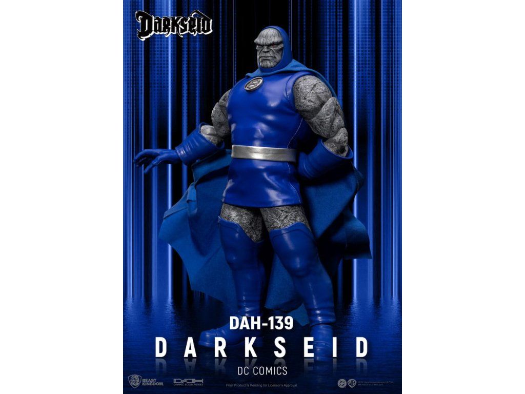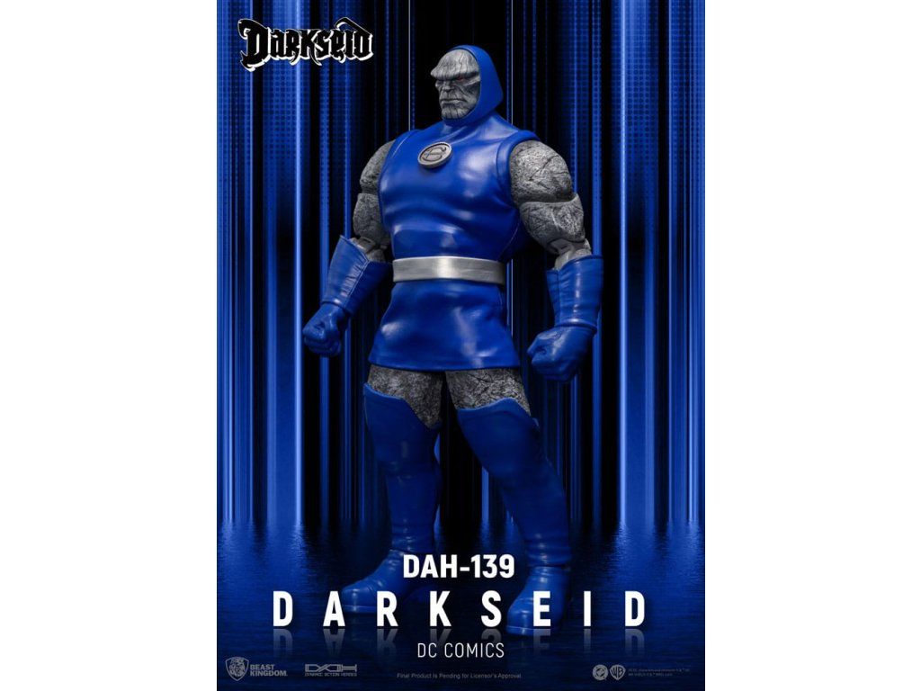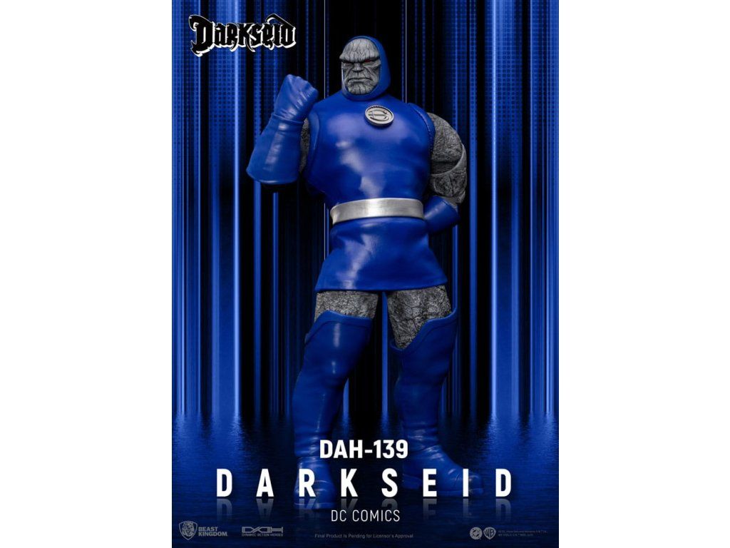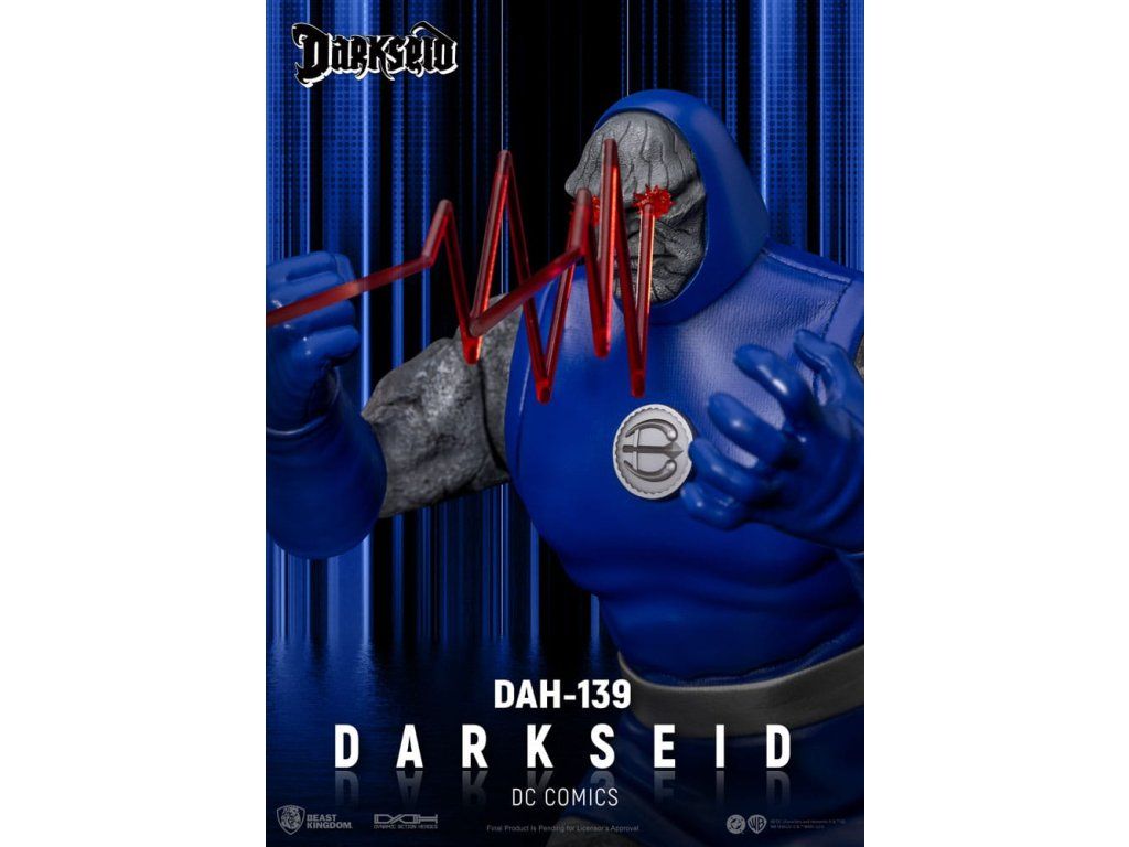 Apokolips tüzes világából érkezik Darkseid, az elnyomás és a pusztítás végső szimbóluma a DC-univerzumban. Pusztító Omega-sugarakkal és halhatatlan testével felfegyverkezve Darkseid arra törekszik, hogy uralja az univerzumot és eltörölje a szabad akaratot. Ez a DAH-139 gyűjtői figura a képregény ikonikus rajzai által ihletett, rendkívül részletes szobrászattal rendelkezik, amely megörökíti Darkseid durva kőarcát és fenyegető jelenlétét. A bársonyos felületű, prémium kék és ezüst harci öltözékbe öltözött, markáns teste a sötét isten auráját sugározza. Nagymértékben mozgatható kialakítás 18 különleges ponttal, köztük 4 cserélhető kézzel (ököl, nyitott kéz, tárgyat tartó kéz, alkalmi kéz), valamint exkluzív Omega Beam alkatrészekkel a dinamikus pózoláshoz. Ez egy nélkülözhetetlen mestermű minden DC rajongó számára. A figura feje hűen adja vissza Darkseid vonásait és arckifejezéseit egy híres képregényrajzoló tervei alapján. A prémium minőségű szövetből készült jelmez Darkseid ikonikus harci ruháját utánozza.Kiegészítő paraméterek