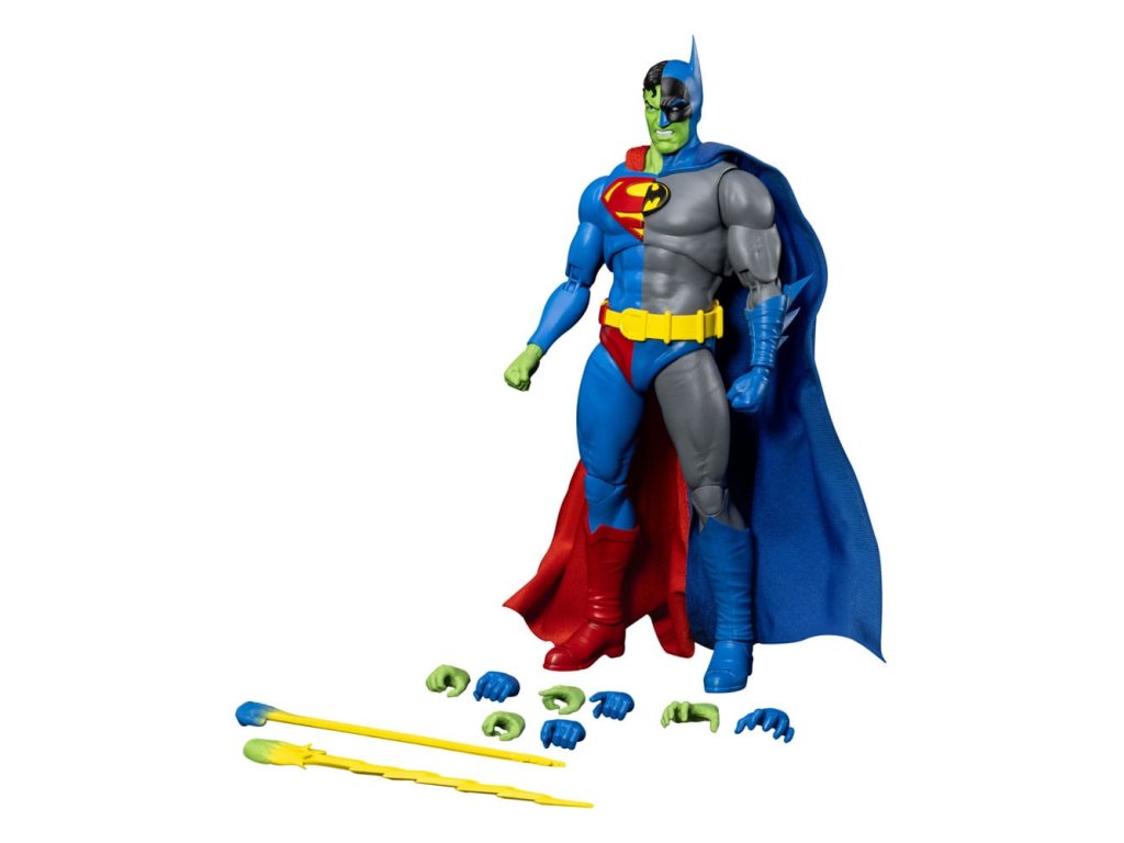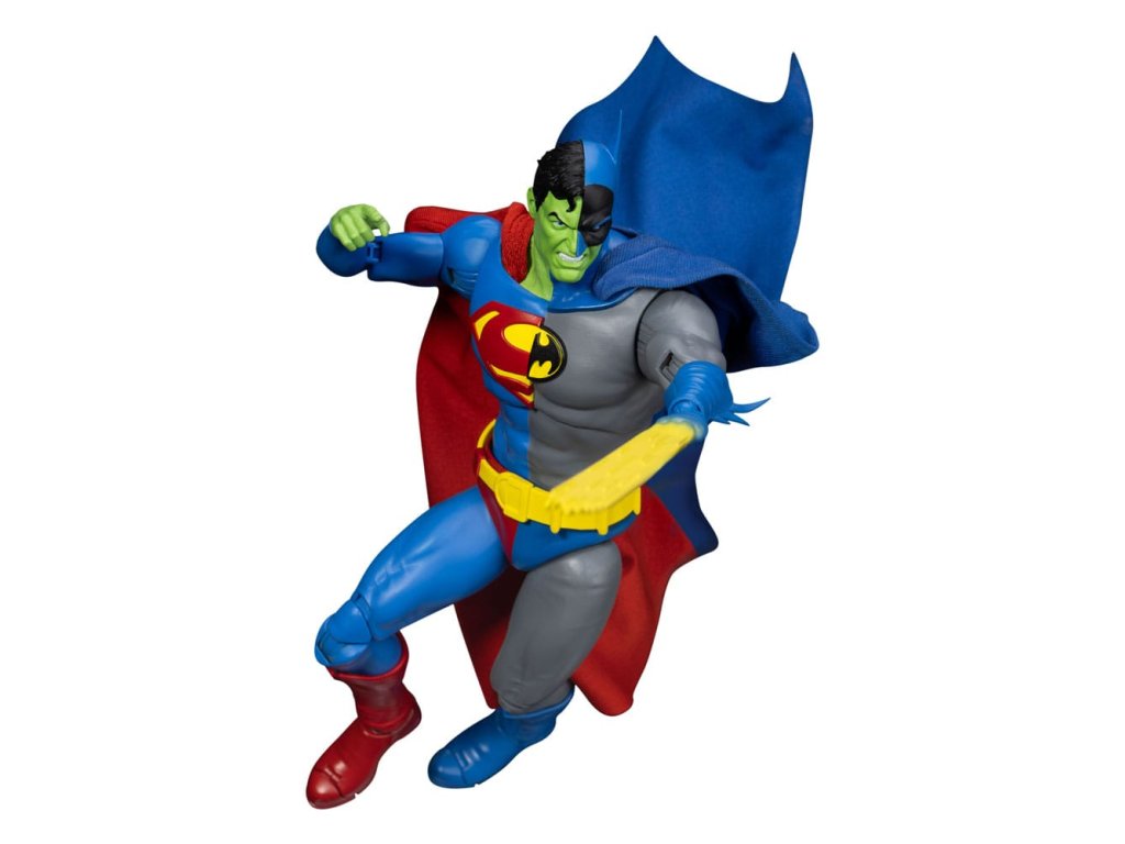 Két legenda, egy gonosztevő - itt jön az összetett Superman! A Beast Kingdom Dynamic 8ction Heroes (DAH) sorozatában a DC ikonikus fúziós karaktere - Composite Superman - egyesíti Superman erejét és sebességét Batman intellektusával és harci képességeivel. Ez az 1/9 méretarányú figura 22 ponton átcsukható, két cserélhető fejjel, több kézzel (beleértve a hőlátás pozícióit is) és egy mozgatható szövetköpennyel rendelkezik a dinamikus repülés és harci bemutatók érdekében. Hűen újraalkotott, osztott színű jelmez részleteivel, két mellkasi emblémával és kiváló minőségű kézzel festett kivitelezéssel, ez a figura kötelező darab a Superman-, Batman- és DC-gyűjtők számára. Tulajdonságok: - Két részletesen megformázott fej (normál x1; dühös x1) - Prémium minőségű szövetköpeny, amely hűen tükrözi az eredeti textúrát - DAH test, kb. 22 artikulációs ponttal - 5 cserélhető kéz (köztük egy pár a hőlátó pozíciókhoz) - Ruházat.Kiegészítő paraméterek