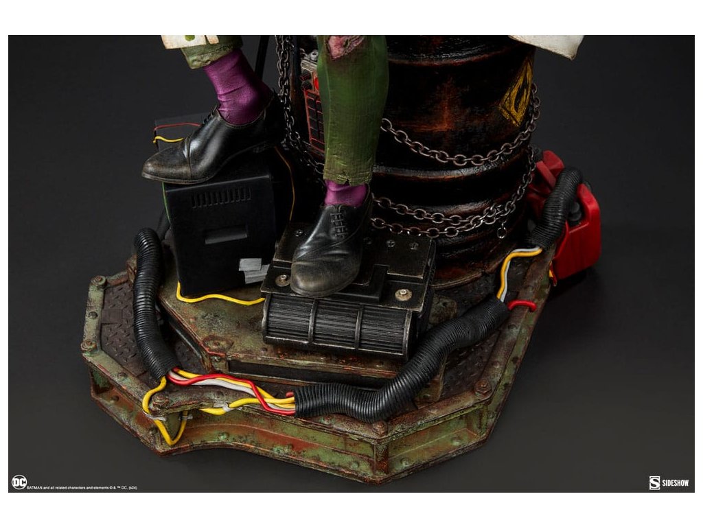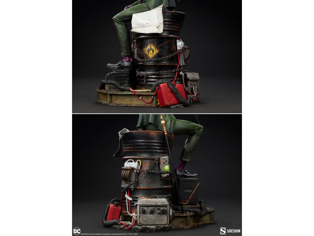 "Melyik szám jön a három után, amikor a lovag elbukik? A válasz: kettő... egy... A Sideshow bemutatja a The Riddler™ figurát prémium formátumban. Ez a pusztító DC emléktárgy kihívás elé állít, hogy megoldj egy komoly rejtélyt Gotham alvilágának mélyén. A Riddler prémium formátumú figura 49 cm magas, 30 cm széles és 36 cm mély, az egocentrikus Edward Nygma pedig egy fekete lakkozott hordóból gúnyolja Batmant. Az izmos és szociopata stratéga egyik kezében egy egyszerű papírkirakót, a másikban pedig egy detonátort tart. A Riddler szándékosan helyezte magát a rozsdás raktár előterébe. A nyomok és fenyegetések - köztük a Wayne Tower biztonsági felvételei és egy tervrajz, egy elektronikus billentyűzet, egy kérdőjeles bot, generátorok, benzines hordók, láncok és drótok - magasra vannak halmozva. Most a Riddler ott tartja Batmant, ahol látja, hogy a kirakós összes darabját összerakja... vagy meghal, ha megpróbálja. A karakter képregényes kinézete által inspirált, prémium formátumú Riddler figura a legjobban kidolgozott és leglelkesebb formájában ábrázolja Gotham City gonosztevőjét. Klasszikus zöld öltönyét és kalapját, szürke és lila alsóneműjét, valamint lila nyakkendőjét és maszkját viseli a hozzá illő zoknival és kesztyűvel. A DC-szobor ipari alapja tele van veszélyekkel, amelyek célja, hogy próbára tegye a világ legjobbnak mondott nyomozóját. Ha a Riddler nyer, a Wayne-torony BOOM! Szóval tik-tak. Az idő mindjárt lejár. Találjátok ki, mi van: Mit kapsz, ha megrendelsz egy Riddler figurát prémium formátumban a Sideshow-tól? Csak egy módon tudhatod meg!49 x 30 x 36 cm 19,5" H x 11,8" W x 14,3" L".Kiegészítő paraméterek