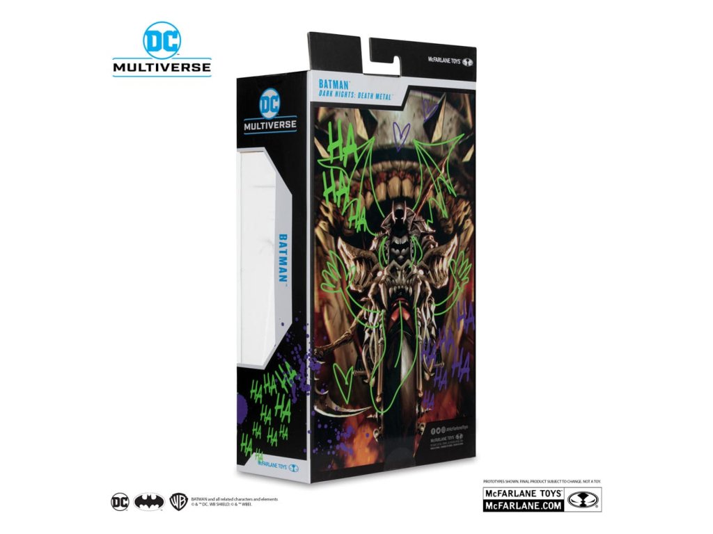 A Sötét Éjszakák: Fém világméretű pusztító eseményei után a Földet beborítja a Sötét Multiverzum, és a felismerhetetlenségig kiforgatott pokollá változik. Batman hajlandó feláldozni saját emberségét a nagyobb jó érdekében, és a rosszindulatú Fekete Lámpás Gyűrűt viseli, amely felruházza őt a halottak feltámasztásának képességével. A Sötét Lovag most egy zombihadsereg élén és egy csontokból készült Batbiciklin ülve vív háborút a nevető Batman és a mindenható istennő, Perpetua ellen, hogy megmentse a DC Multiverzumot! - Hihetetlenül részletes, 7"-os méretarányú figurák a DC Multiverzum alapján - Ultra Articulationval tervezve, akár 22 mozgó alkatrésszel a teljes körű pózolás és játék érdekében - Joker átvette a hatalmat és számos fejlesztést hajtott végre Batmanen - Batman Bat Sickle-lel és bázissal érkezik - Jokerizált kiegészítőket tartalmaz: 4 játékkártya, gyűjtőkártyatartó és bázis - Gyűjtsd össze az összes MCFARLANE TOYS™ DC MULTIVERSE™ figurát!Kiegészítő paraméterek