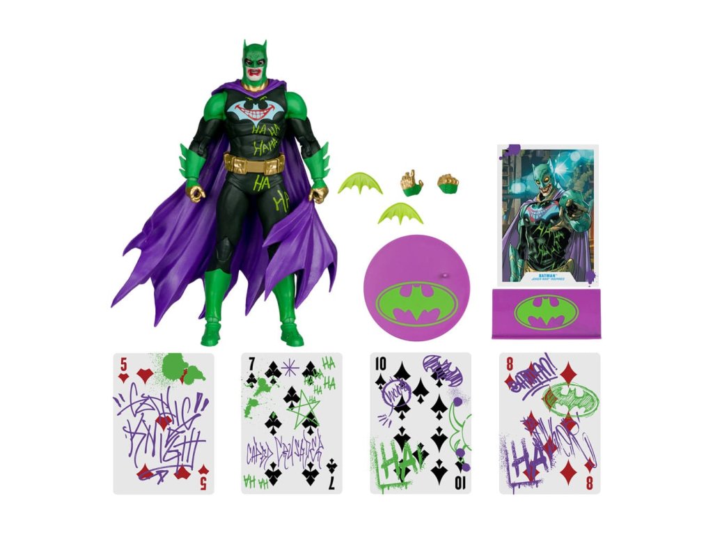 BRUCE WAYNE gyerekként végignézte, ahogy szüleit brutálisan meggyilkolták GOTHAM CITY BŰNÖSTERRÉN. Haláluk miatt traumatizálódott, ezért ő lett a világ legnagyobb fegyvere a bűnözés ellen - BATMAN! Hogy a végső bosszúállóvá váljon, DARK KNIGHT™ az elméjét és a testét edzette, hogy az igazságszolgáltatás iránti könyörtelen hajszában elérje a szellemi és fizikai tökéletesség csúcsát! - Hihetetlenül részletes, 7" méretarányú figura a Joker War képregénysorozat alapján - Ultra artikulációra tervezve, akár 22 mozgó alkatrésszel a sokféle pózolás és játék érdekében - A tartozékok közé tartozik 4 játékkártya, 2 extra kéz, 2 batarangot és egy talapzatot a figura bemutatásához - BATMAN Jokerizált díszben, exkluzív dizájnos dobozban kerül bemutatásra - Tartalmaz egy gyűjtői művészeti kártyát a figura portréjával az előlapon és egy eredetiségigazolással a hátoldalon, valamint egy művészeti kártya állványt.Kiegészítő paraméterek