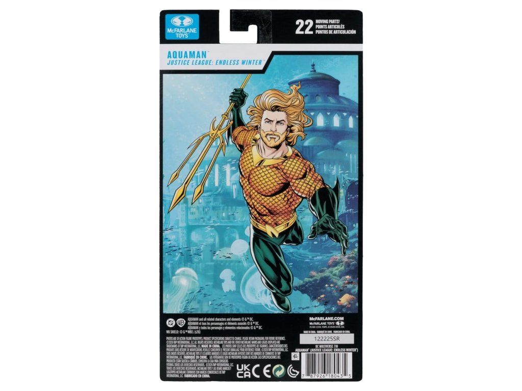 Félig ember, félig atlantiszi, Arthur Curry Aquaman, Atlantisz királya és a Föld hatalmas óceánjainak védelmezője. Az Igazság Ligájának alapító tagjaként a felszíni világot is védi a gonosz erőitől! Aquaman atlantiszi fiziológiája lehetővé teszi számára, hogy a víz alatt lélegezzen, hihetetlen sebességgel ússzon, és emberfeletti erejével elviselje az óceán mélységeit. Királyi származása megkülönbözteti őt a többi atlantiszi lakostól, de az is egyedülálló képességet ad neki, hogy telepatikusan kommunikáljon a tengeri élőlényekkel - Hihetetlenül részletes, 7"-os méretarányú figura a DC MULTIVERSE™ alapján.- Ultra artikulációval tervezték, akár 22 mozgó alkatrésszel a pózok és a játék teljes skálája érdekében - Aquaman az Endless Winter™ képregényben való megjelenésén alapul - Gyűjtsd össze az összes MCFARLANE TOYS™ DC MULTIVERSE™ figurát.Kiegészítő paraméterek
