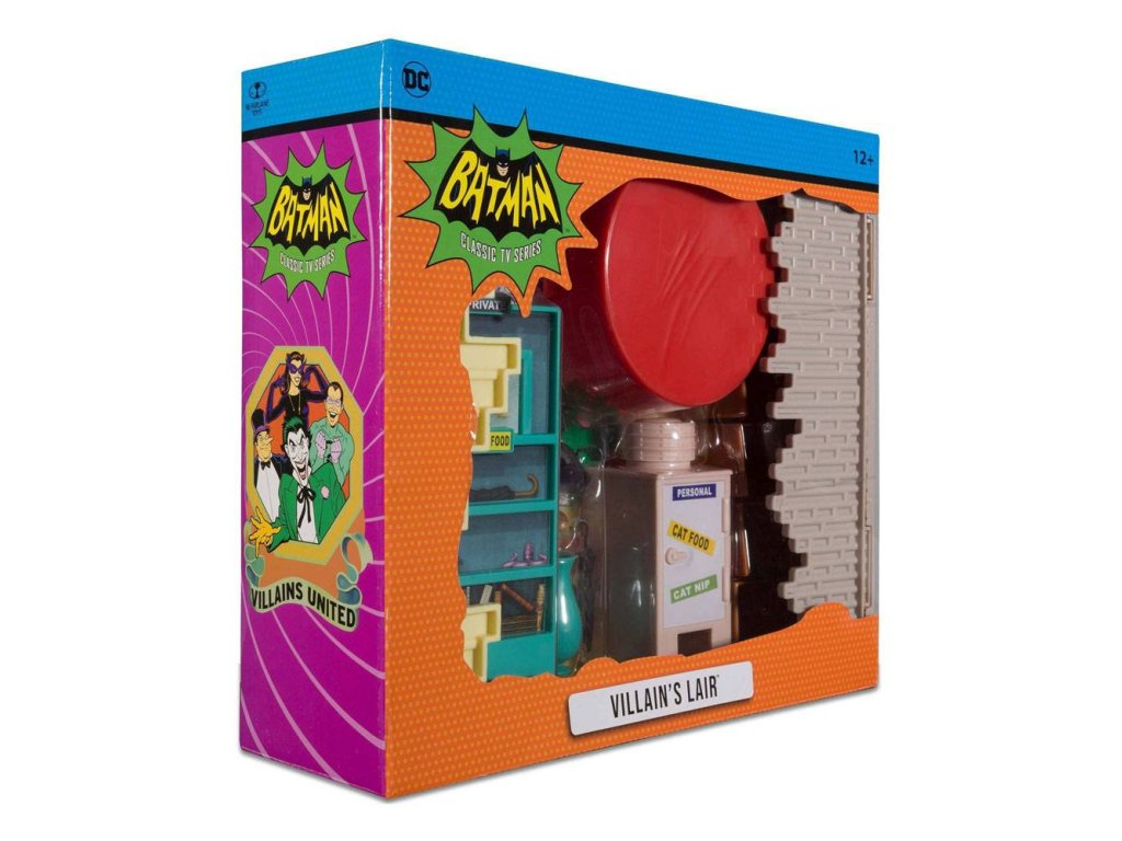 Az óceán közelében rejtőzik az Egyesült Földalatti titkos búvóhelye. A legelvetemültebb bűnözők menedéke, akik abbahagyják a csábítást, hogy megpróbálják legyőzni Batmant. Az egyes kiemelkedő tagok számára kivájt szekciók, mindenféle aljas eszközök és a saját gonoszságukról készült képek díszítik a falakat, azt gondolnád, hogy a leggonoszabb elmék közül néhányan végre legyőzhetik Batmant. Azt gondolnád. Főbb jellemzők: - A klasszikus 1960-as évekbeli tévésorozat alapján - POP! SMACK! BANG! Ragadd meg a leggonoszabb gonosztevőket és bármely más DC Retro figurát a McFarlane Toys-tól, és éld át a teljes akciót! - A Lair Villains tartalmaz egérfalat, könyvespolcot, szekrényt, esernyőtartót, esernyőt, asztalt négy székkel, radarasztalt, harapós tejet és Hecate-et, a macskát - Zárt dobozba csomagolva, az 1960-as évekbeli Batman TV-sorozat ikonikus, régimódi megjelenésével - Gyűjtsd össze az összes DC Retro figurát a McFarlane Toys-tólMéret: 28 x 30 x 8 cm.Kiegészítő paraméterek
