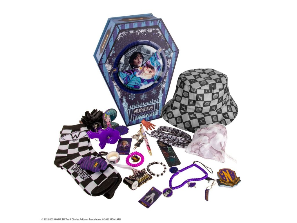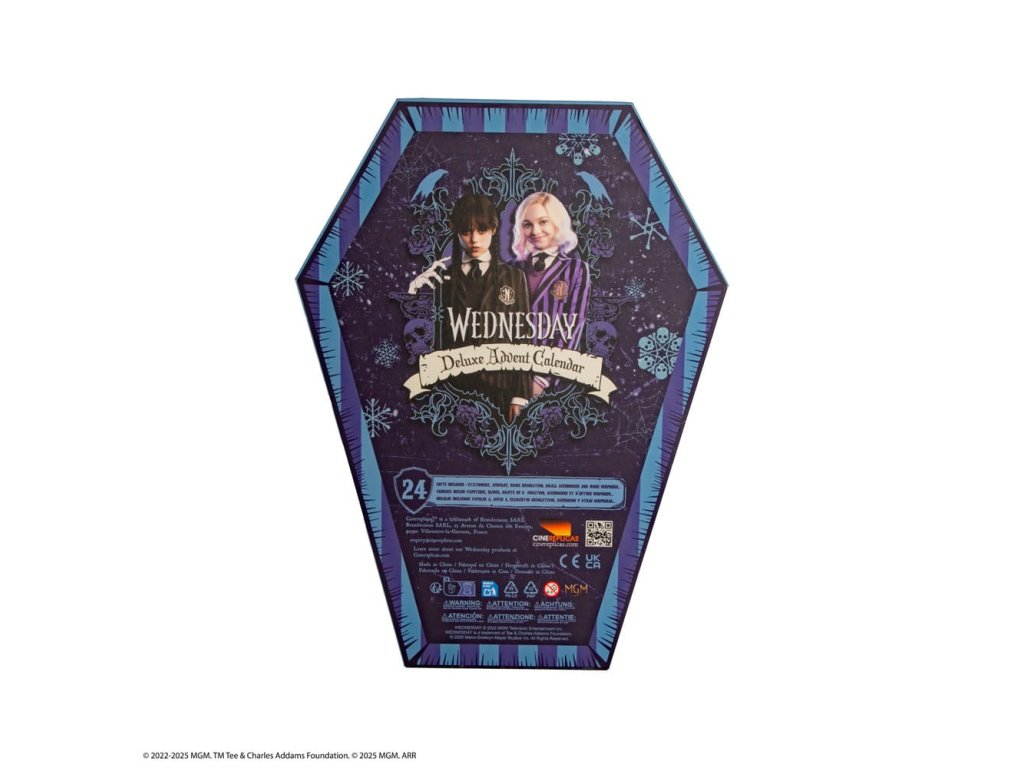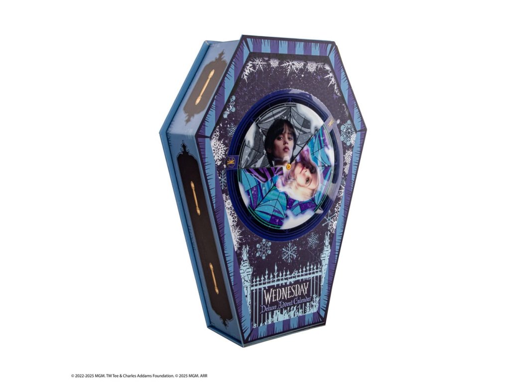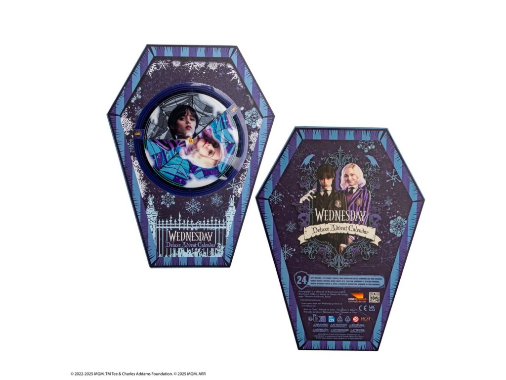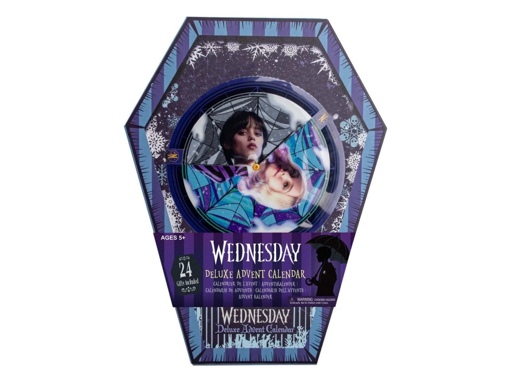 Hivatalosan engedélyezett adventi naptár 24 szerdai témájú ajándéktárgyat tartalmaz (Friendly karkötő, kis squishy, memory block squishy, akril könyvjelző, mágnes, cipőfűző, fekete dalie virágos kitűző, telefonos charm, fa dísz, washi szalag, pattogó nyúlvány, szőtt tapasz, akrilfigura, kulcstartó műanyag fóliával, zokni, bevásárlótáska, bababélyegző, sütivágó, lencsés matrica, mikroszálas kendő, horgászkalap, toll és kitűző, egyszerű plüss kulcstartó, hajgumi)Kiegészítő paraméterek