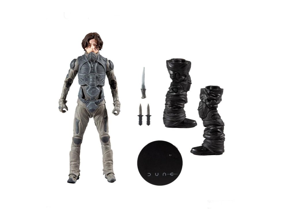 Egyenesen a Dűne című filmből származik ez a rendkívül részletes akciófigura. A figura körülbelül 18 cm-es, tartozékokkal és talppal együtt, ablakos gyűjtődobozban. Paul Atreides, egy herceg fia, királyi címénél nagyobb sorsra született. Felfedező kalandba keveredik, amely a galaxison keresztül egy barátságtalan, veszélyekkel teli világba vezeti. A sok lehetséges jövőről szóló látomásoktól gyötörve Paulnak le kell győznie félelmeit, és meg kell ragadnia végzetét, mert a galaxis sorsa az ő vállán nyugszik.- Paul Atreides a Fremen Stillsuitban van ábrázolva, amely lehetővé teszi az emberi test túlélését az Arrakis száraz sivatagaiban.- Paul egy Crysknife, ikerkések, egy alap és egy Build-a-Rabban karakterdarab kíséretében érkezik.- Gyűjtsd össze az összes többi Dűne figurát! A Duna McFarlane Build-a vonal: Lady Jessica, Duncan Idaho és Stilgar. Külön megvásárolható.