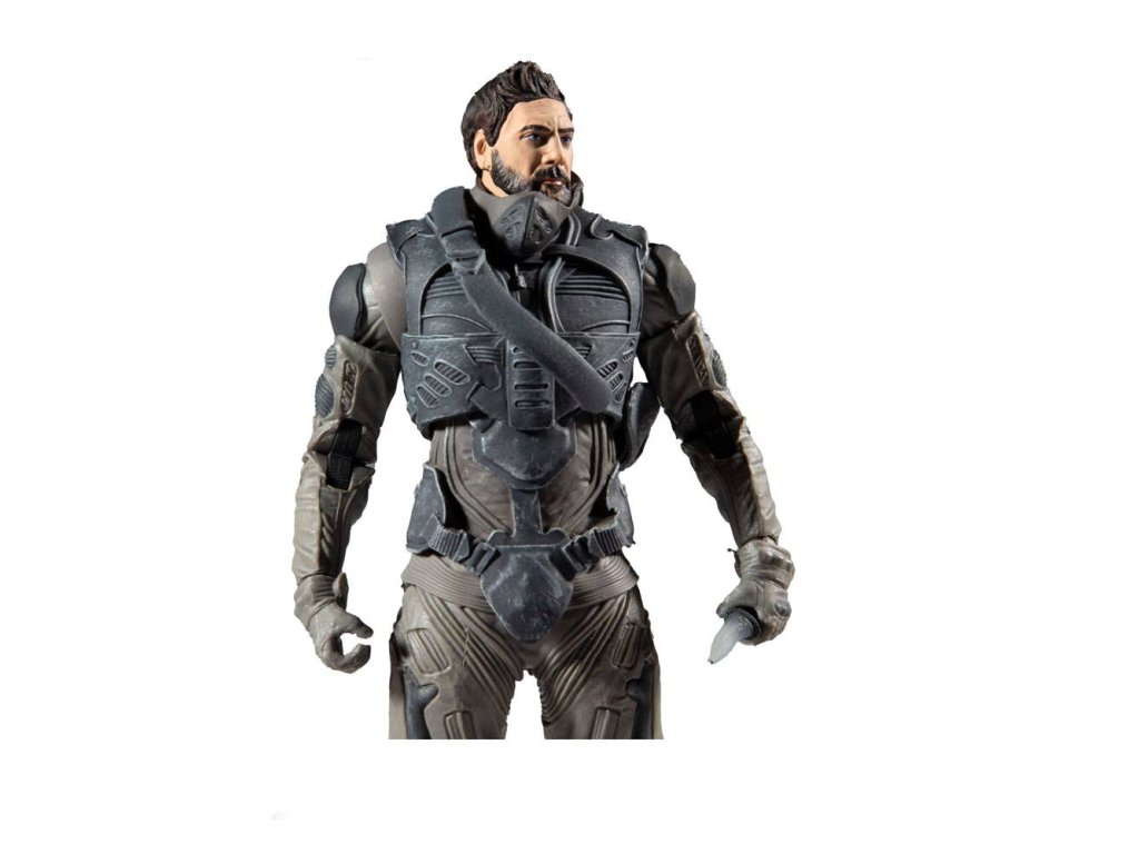 Egyenesen a Dűne-filmből származik ez a rendkívül részletes akciófigura. A figura körülbelül 18 cm-es, tartozékokkal és alaplappal együtt, gyűjtői ablakkal ellátott dobozban. Stilgar a dűnei Fremen harcosok vezetője, és nagy bölcsességgel rendelkező emberként tisztelik, aki a Dűne veszélyes vadonjával való mély szimbiózisból született. Született túlélőként Stilgar mindent megtesz, hogy megvédje a sivatagi világ szent homokját, amelyet népe otthonává tett - Stilgar a Fremenek csendruhájában van ábrázolva, amely lehetővé teszi az emberi test túlélését Arrakis napperzselte sivatagaiban - Stilgar egy crysknife, egy fremkit táska, egy bázis és egy darab karakterfigurával érkezik, hogy megépíthesse Rabban - Gyűjtsd össze az összes többi Dűne figurát! Lady Jessica, Paul Atreides és Duncan Idaho. Külön megvásárolható.