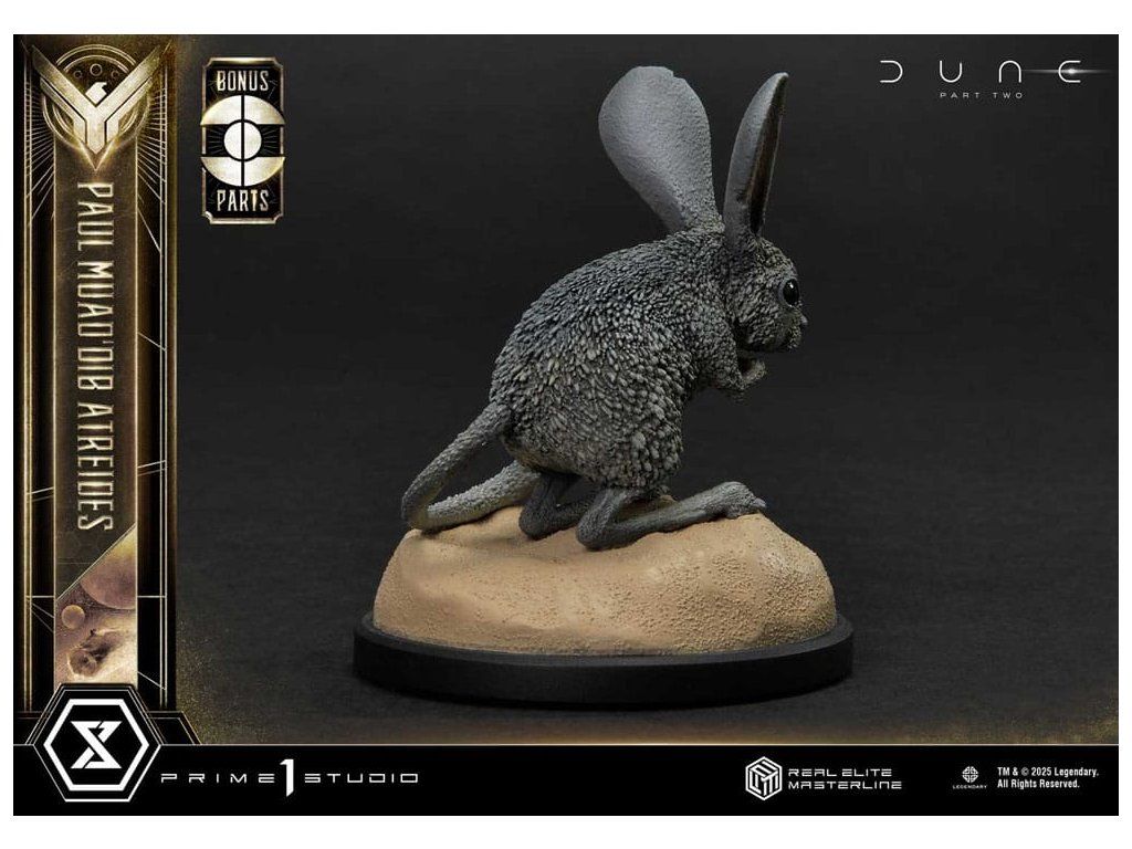"Paul Muad'Dib Atreides vagyok, az Arrakis hercege. Isten tanúskodjék róla, én vagyok a Hang a külvilágból! A PARADICSOMBA vezetlek benneteket!" A "Real Elite Master Series" a legmodernebb szobrászati és festési technikák és a prémium minőségű anyagok felhasználásával kombinálva felülmúlhatatlan realizmust kínál a karakterek ábrázolásában. Ennek az úttörő formátumnak az első megjelenéseként egyenesen Paul Atreides a Dűne: Második részből! Ez az 1/3 méretarányú szobor Paul-t ábrázolja, amint a második részben szembesül a sorsával. Pózát, ahogy magasra emeli a crysknife-ot, a kulcsfontosságú látvány ihlette, és megtestesíti rendíthetetlen elszántságát, hogy bosszút álljon, megvédje szeretteit és betöltse szerepét. Szelíd, de határozott arckifejezése Timothée Chalamet színész hasonmását és belső erejét tükrözi, ragyogó kék szemei pedig a fűszereknek való kitettségét szimbolizálják. A csendruha aprólékosan van megrajzolva, megragadva minden textúrát, rugalmas ráncot és port, amely a Fremenek között töltött életét idézi. A csendruha, a jubba köpeny és az egyedi alap szinergiája a realizmus gazdag érzetét kelti. A merész bónuszváltozat a felsőtestet és a kezeket is tartalmazza, lehetővé téve a különféle pózok létrehozását. Méltóságteljes póz, mellmagasságban tartott crysknife-okkal, egyenesen előre bámulva. Feszült póz, mindkét kezében kampóval, mozgásra készen. Párosítsd egy mellszobor állvánnyal, hogy kibővítsd a megjelenítési lehetőségeidet. Ehhez a különleges változathoz exkluzív bónuszként jár a sivatagi egér "Muad'Dib" és a homokférgek megidézésére használt "Thumper". Mindkettő a film világát szimbolizáló ikonikus tárgy, és tökéletes kiegészítői a kiállításodnak. Az ifjú megmentő végre felébredt. Hozd el életének elszántságát a gyűjtőszobádba! Termékleírások: - Rendkívül részletes Timothée Chalamet hasonmás szobor - Dűne: Második rész tematikus alap - 2 x cserélhető felsőtestrész (A: Póz a fej fölé emelt krikszkéssel, B: A karok és kezek cserélhetők) - A B felsőtestrész alkatrészei: - 1 x cserélhető jobb kar és kéz (a crysknife-ot a mellkas magasságában tartja) - 1 x cserélhető jobb kar (természetes alsó helyzetben) - 3 x cserélhető jobb kéz (Crysknife, Fremen Spring Gun, Maker Hook) - 2 x cserélhető bal kar (Open Hand, Maker Hook) - Jubba köpeny (szövet anyag) - 1 x Bust Stand - 1 x Muad'Dib (Desert Mouse) [BONUS PART] - 1 x Thumper [BONUS PART] - Limitált darabszám: 400 db.Kiegészítő paraméterek