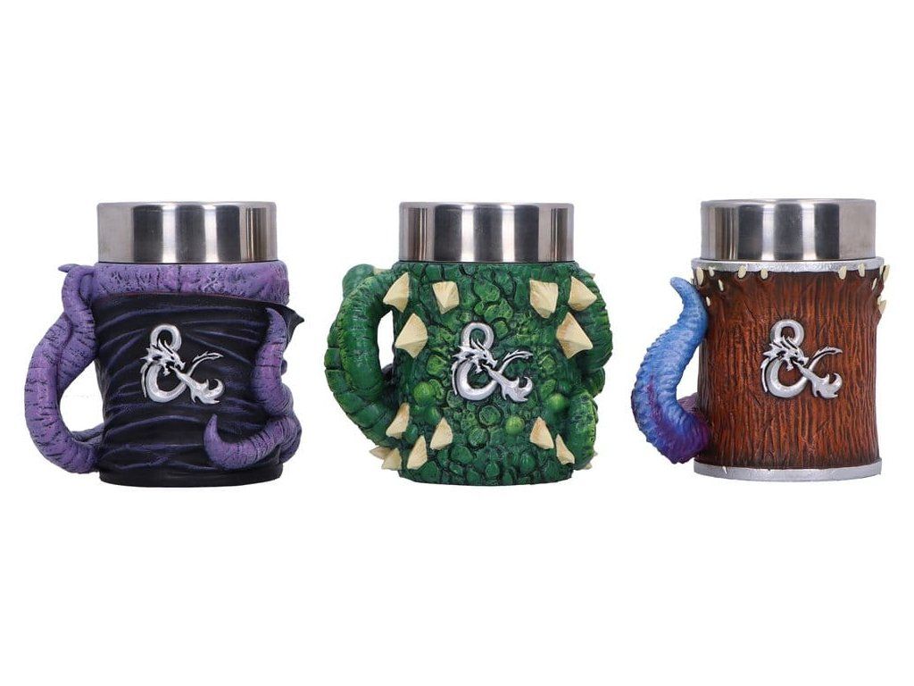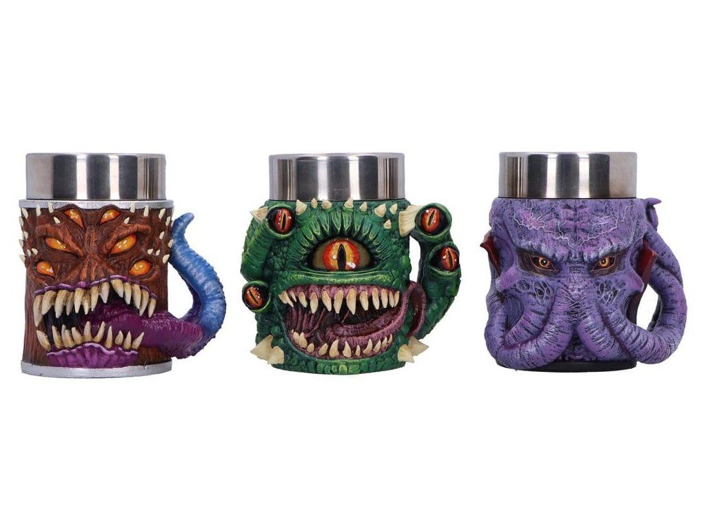 Három darab 8,5 cm-es gyűjtőkancsóból álló készlet, amelyet a Dungeons & Dragons ikonikus szörnyei ihlettek. Bonyolult 3D szobrászat, kézzel festett gyantafedelek és rozsdamentes acélbetétek a biztonságos, praktikus használat érdekében. D&D márkajelzéssel ellátott bemutató kockába csomagolva, tökéletes ajándéknak vagy polcra helyezéshez. Ideális a D&D rajongók, fantasy gyűjtők, társasjáték játékosok és a szokatlan italkészletek kedvelői számára. Adj egy szörnyűséges csavart a következő játékestedhez ezzel a fantáziadús felespohár-készlettel - Méret: kb.Kiegészítő paraméterek