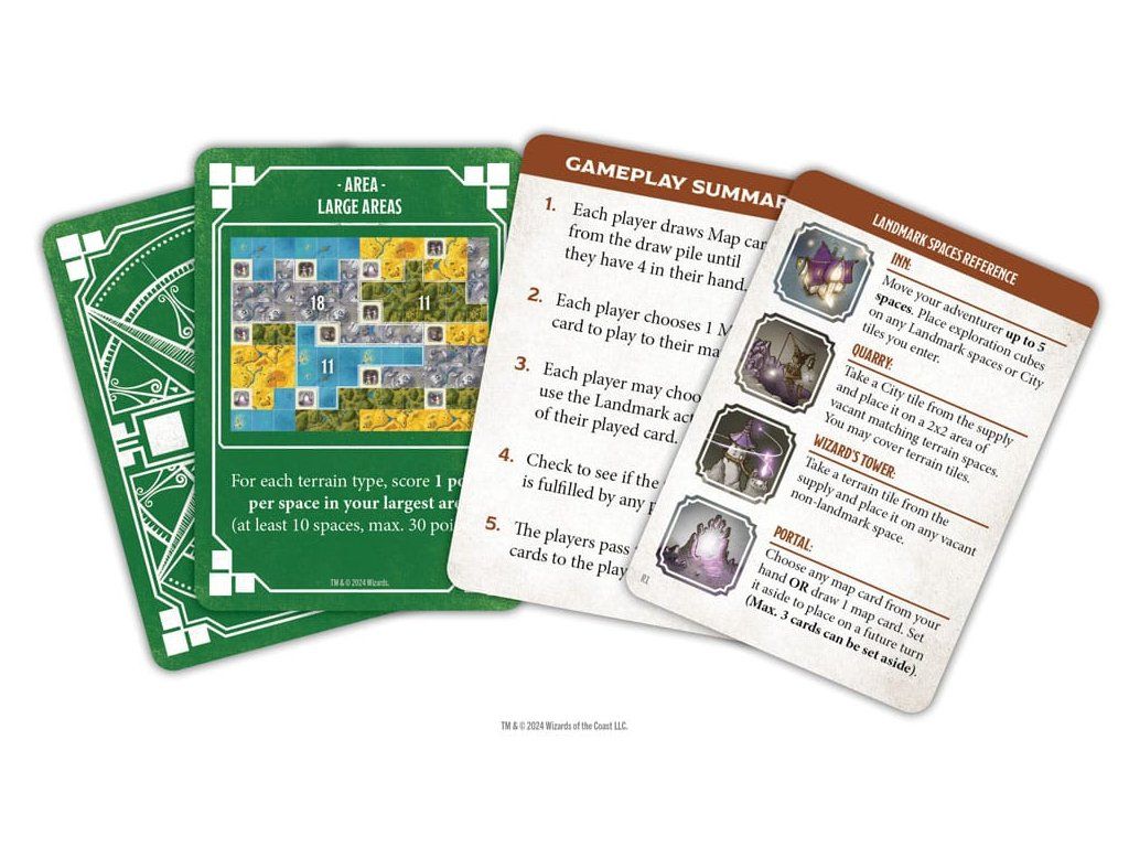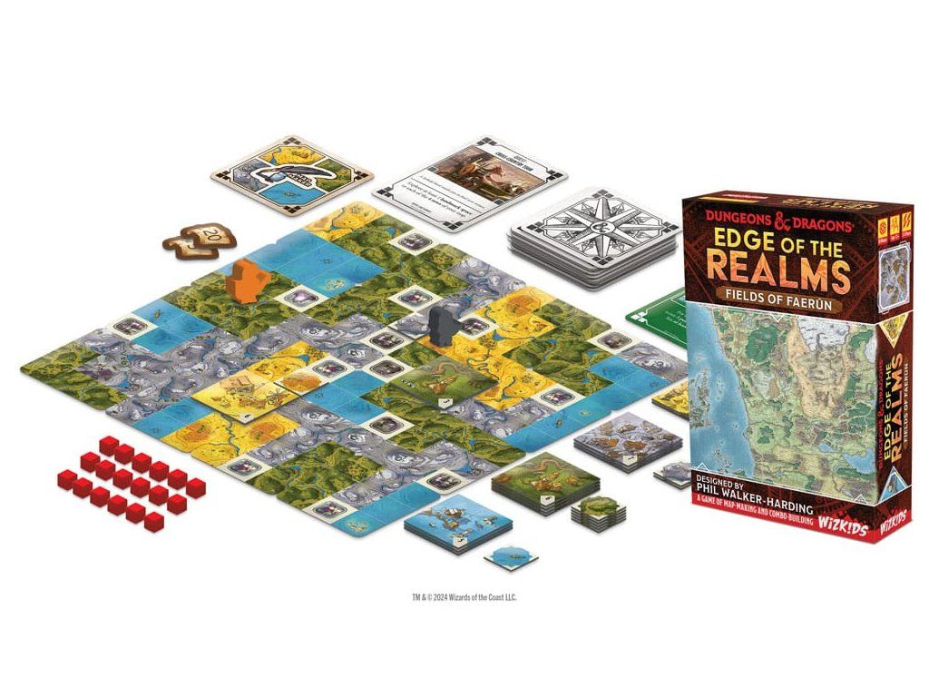 FEDEZD FEL A KIRÁLYSÁGOT! LÁTOGASSON EL A VARÁZSLATOS LÁTNIVALÓKHOZ! VEZESD MAGAD A GYŐZELEMHEZ! A Kingdom Edge az elismert tervező, Phil Walker-Harding munkája, az eredeti csempéket Gerralt Landman készítette! Minden kalandhoz kell egy jó terv! Felfedezők vagytok az Elfeledett Birodalmakban. Fedezzetek fel új terepeket és varázslatos helyeket, és készüljetek fel kalandozó utatokra. De gondolkodjatok gyorsan! A játék gyorsan halad, ha mindenki egyszerre játszik: - Vegyél egy térképkártyát a kezedbe - Válassz ki egy térképkártyát, és tedd le képpel lefelé - Mindenki fedje fel a térképkártyákat, és tegye hozzá a saját térképéhez - Ellenőrizd a küldetés teljesítését, és szerezz pontokat - Add át a kezed a bal oldali játékosnak, és kezdd elölről! Igazítsd el a terepet, aktiváld a nevezetességeket, látogass el városokba és teljesíts küldetéseket. 15 forduló után kész térképetek lesz, készen a kalandozásra! A legtöbb pontot gyűjtő játékost koronázzák meg a Királyság peremének legnagyobb felfedezőjévé! Alkatrészek* - 116 térképkártya - 5 indítókártya - 1 térképkészítő kártya - 10 küldetéskártya - 2 területkártya - 5 referenciakártya - 50 felfedezőkocka - 4 küldetésjelző - 5 kalandozó figura - 1 pontozótömb.Kiegészítő paraméterek