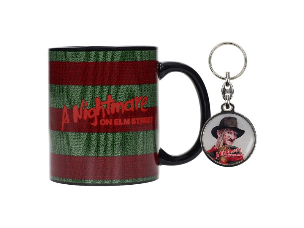 Aludj, ha tudsz... Ez az Egy rémálom az Elm utcában bögre színes motívummal díszített, jellegzetes Freddy Krueger-színekben. A saga minden rajongója számára kötelező darab, ráadásul a szetthez egy fém kulcstartót is kapsz ingyenesen. - 1 bögre kiváló minőségű kerámiából, űrtartalom: 320 ml - 1 fém kulcstartó - Hivatalos licencű termék.Kiegészítő paraméterek