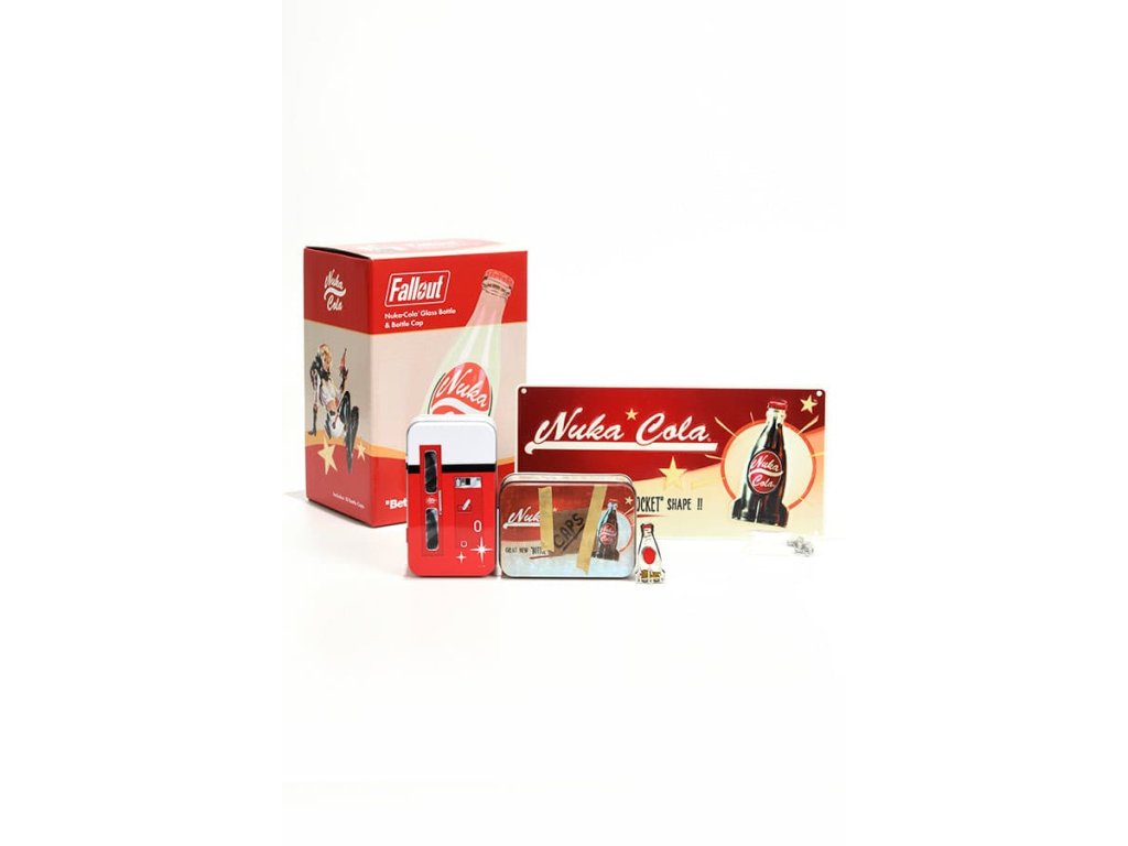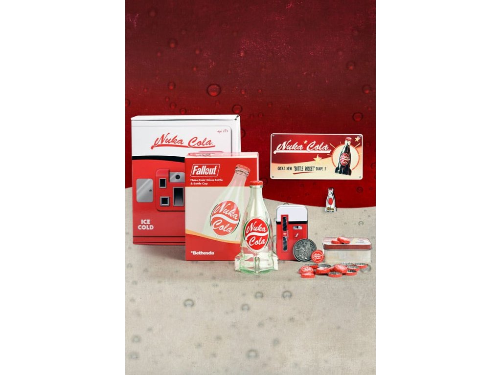 Bemutatjuk a Nuka-Cola Fallout® Fizz Club csomagot! A készletben 1 kitűzőt, bádogtányért, hűtődobozt + érmét, üvegpalackot + 10 kapszulát, bádogdobozt + 20 kapszulát, nyomtatott dobozt és díszcsomagolást kapsz. Méret: 1,77 hüvelyk (4,5 cm) magas. Tartalmazza a fém kuplungot és a piros gumicsatlakozót. 1x fémlemez tábla Anyaga: Fémlemez: Fémlemez, UV-nyomtatással és kiemelkedő részletekkel. Méret: 10 x 5 hüvelyk (25,4 x 12,7 cm). 1x Hűtőszekrény doboz Anyag: Konzervdoboz 4C nyomtatással. Méret: 4,53 x 2,56 x 1,61 hüvelyk (11,5 x 6,5 x 4,1 cm). 1x Érme (hűtőszekrény doboz belsejében) Anyag: Anyag: Cinkötvözet (antik ezüst kivitel). Átmérő: 2 hüvelyk (5,08 cm). 1x Üvegpalack Használatra nem alkalmas. Csak dekorációs célokra. Anyag: Az üvegben lévő üvegekből készült üveg: Szódabikarbónás üveg matricával. Magasság: 7,28 hüvelyk (18,49 cm). 1x Bádogkapszulásdoboz Anyag: 18,49 cm: Bádogdoboz teljes színes nyomtatással. Méret: 3,94 x 2,76 x 1,57 hüvelyk (10 x 7 x 4 cm). 30x Nuka-Cola kapszula Anyag: Konzervdoboz. Méret: 1,024 x 0,2 hüvelyk (2,6 x 0,5 cm). 1x Nyomtatott doboz Méret: 11,81 x 9,84 x 5,12 hüvelyk (30 x 25 x 13 cm).Kiegészítő paraméterek
