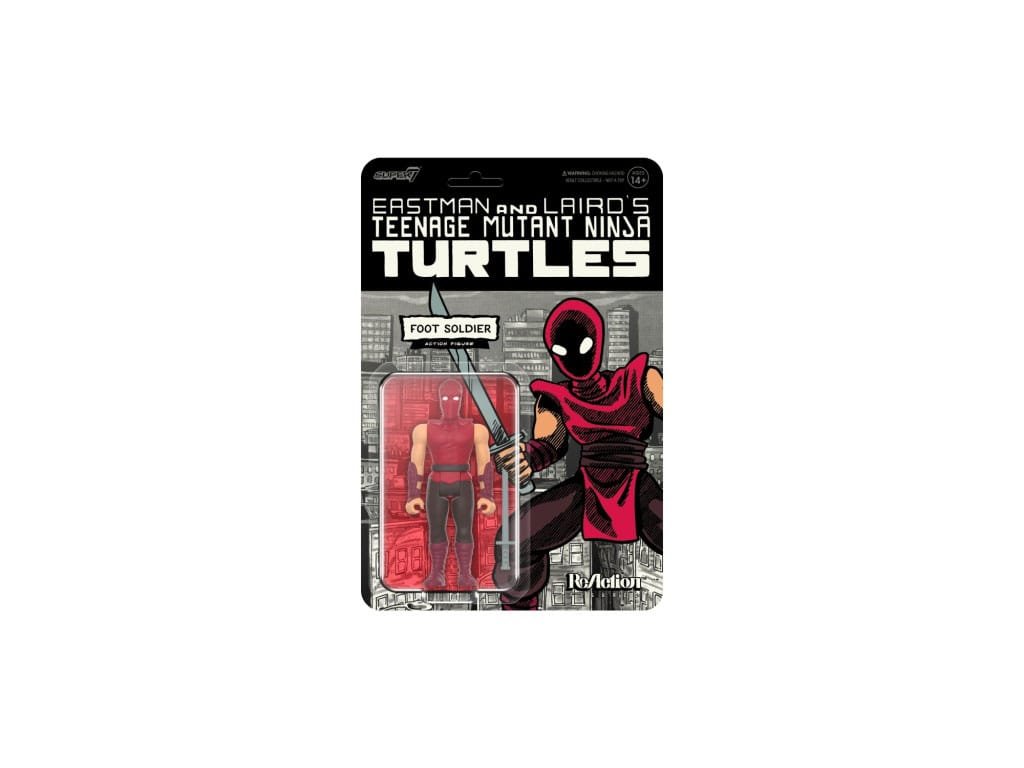 A Lábklán katonái talán képzett nindzsák, de a Tini Nindzsa Teknőcök ellen esélyük sincs! Az 1980-as évek eredeti TMNT-képregényekben való megjelenésük által inspirált legújabb 3,75"-os Teenage Mutant Ninja Turtles ReAction Foot Clan katona figura egy ügyetlen Foot Clan tagot ábrázol piros-fekete egyenruhában, karddal felszerelkezve. Adj a gyűjteményednek egy darabot az eredeti TMNT-ből egy új, a képregény színeiben pompázó Foot Clan katona figurával!Kiegészítő paraméterek